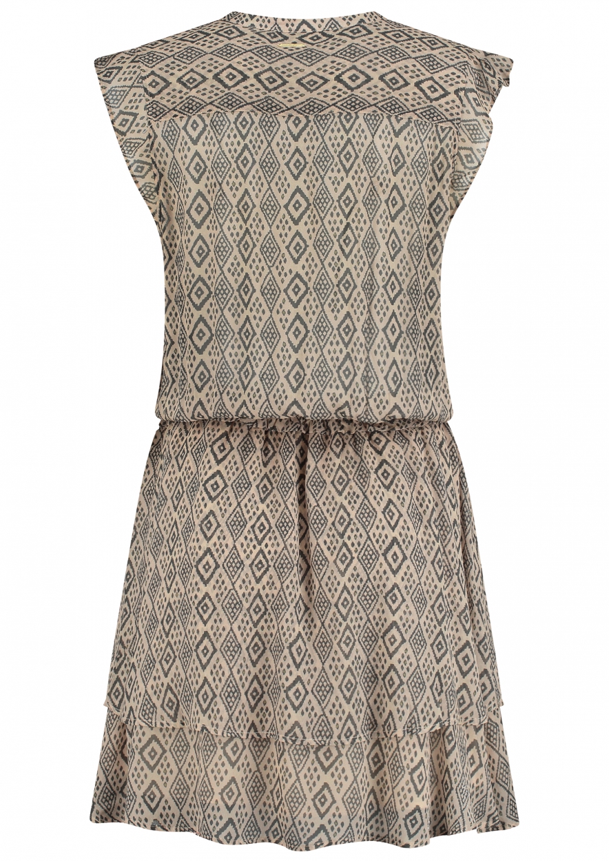 Tweelaags chiffon jurk met een all-over mozaïek print. De Blair dress heeft een knoopsluiting op