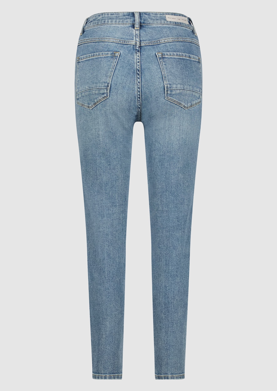 De Chloe is onze mom fit denim, dit model zit los aan de bovenkant van de benen en loopt taps toe. Dit model heeft een hoge taille met een 5-pocket design en is uitgevoerd in een vintage blauwe wassing.