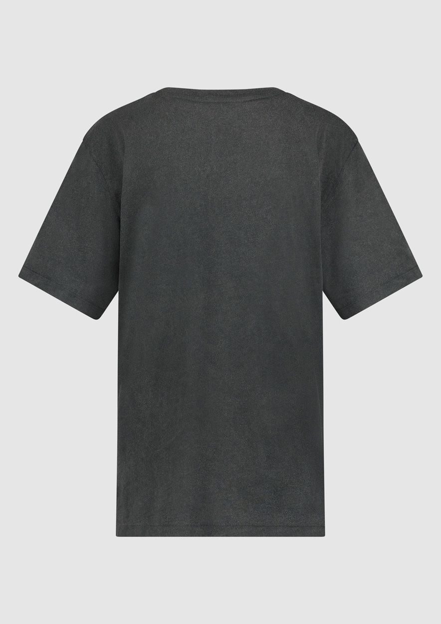 Katoenen vintage t-shirt in een verwassen zwarte tint. De Coco tee heeft een regular fit met een ronde hals en een artwork print op de borst.