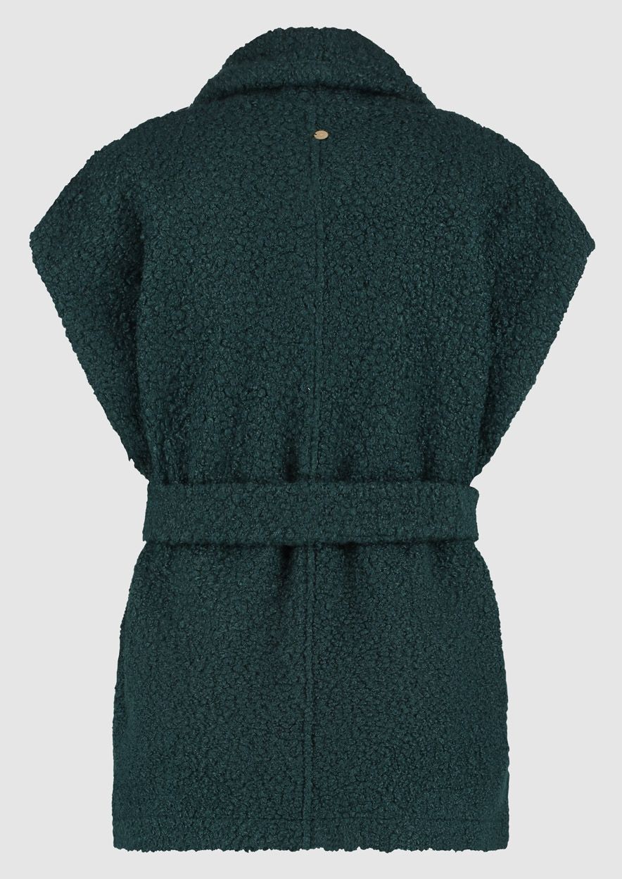 Zacht bouclé gilet uitgevoerd in een petrol blauwe tint. Het Dolly gilet heeft een loose fit met een open voorkant, steekzakken en een bijpassende ceintuur.
