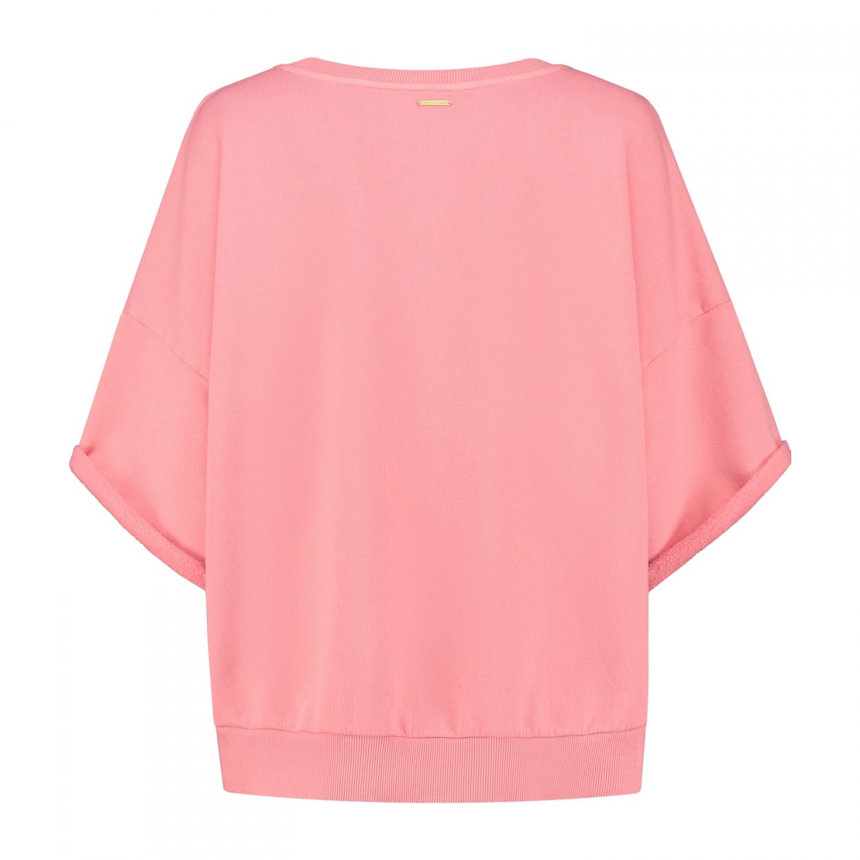 Oversized short sleeve sweater gemaakt van katoen met een zachte, ruwe binnenkant in een roze tint. De Goldie sweat heeft een ronde wijde hals, ribgebreide boorden en korte mouwen