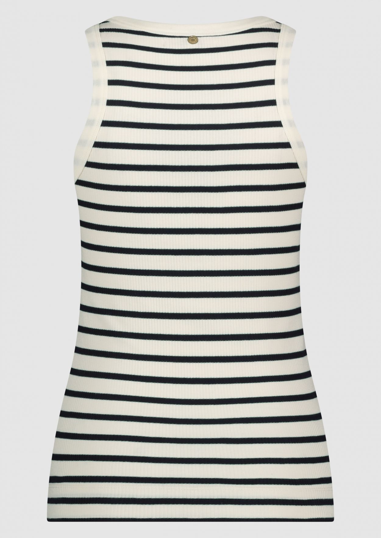 Donkerblauw/wit gestreept singlet gemaakt van geribt katoen. De jada top heeft een aangesloten fit.
