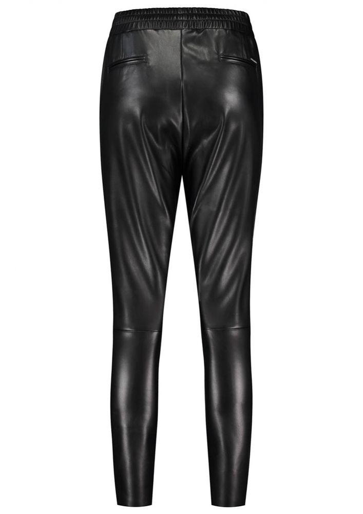 Imitatieleren damesbroek met een tapered fit. De De Jula pants heeft een elastische tailleband met steekzakken en is uitgevoerd in het zwart.