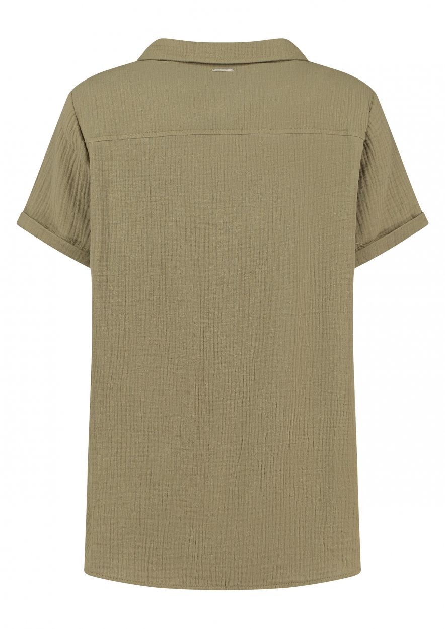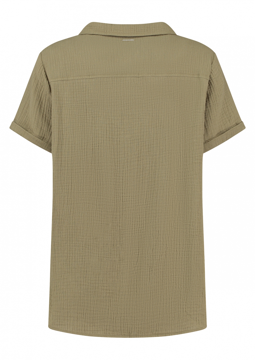 Overhemdblouse met korte mouwen gemaakt van zacht geweven katoen uitgevoerd in een donkergroene kleur. De Loua blouse heeft een klassieke kraag en een knoopsluiting aan de voorkant