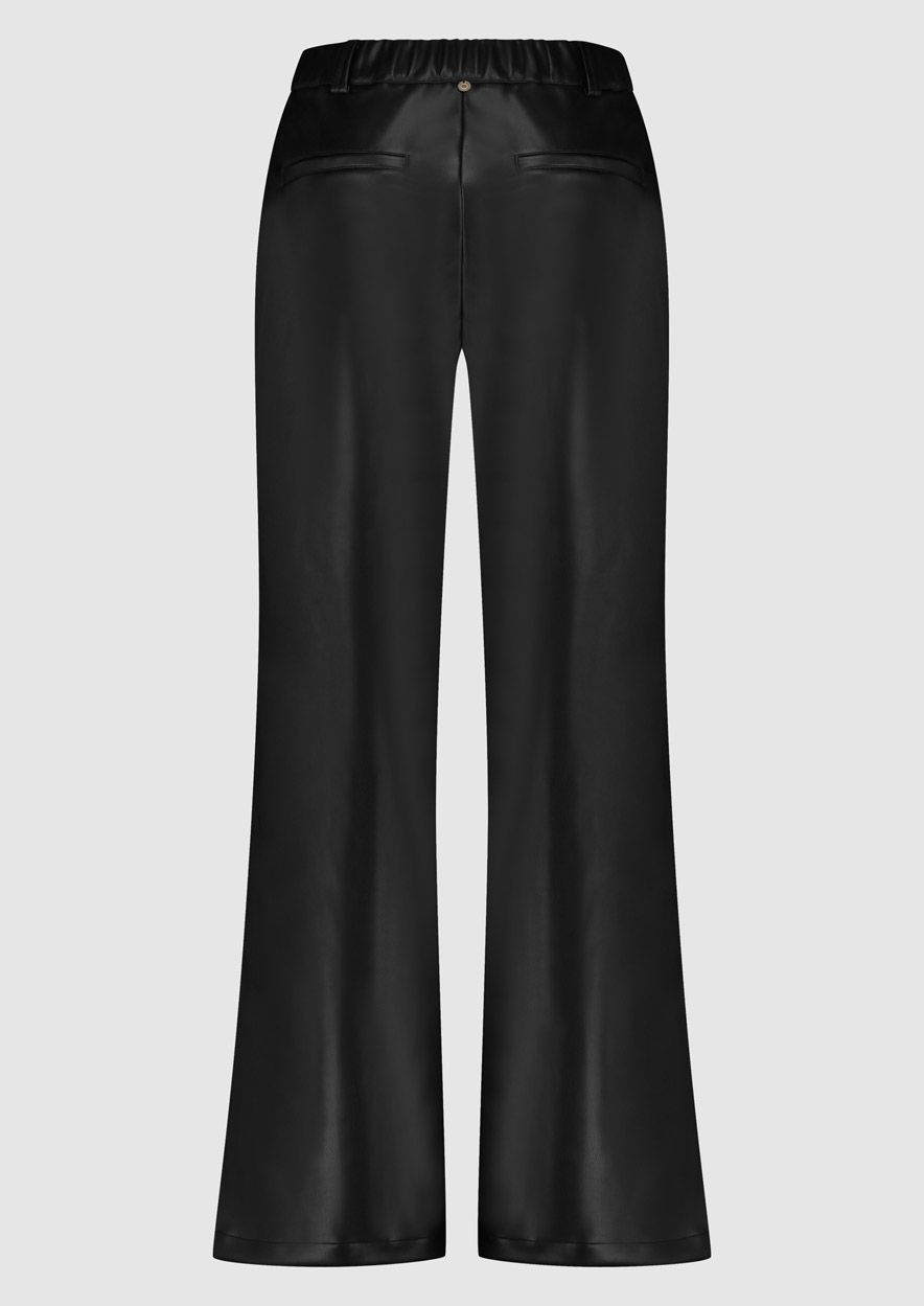 De Scarlet pants is een wide leg damesbroek gemaakt van faux leather uitgevoerd in het zwart. De pants is voorzien van steekzakken en een elastische tailleband. Materiaal: 100% PU, binnenkant: 100% viscose
