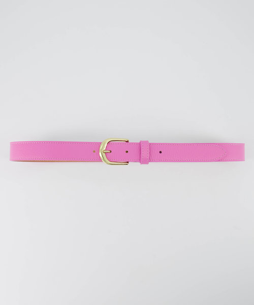 Roze kleurige leren riem van 3 cm breed met goudkleurige gesp.