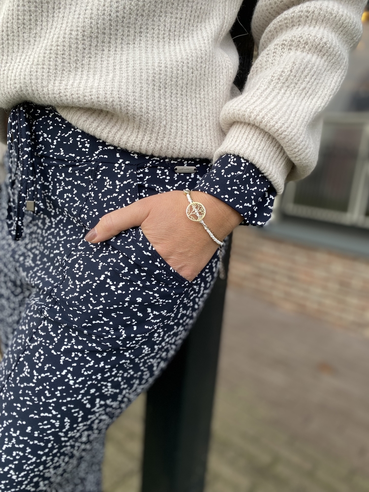 De Koekoek - Travel Pantalon print donkerblauw wit