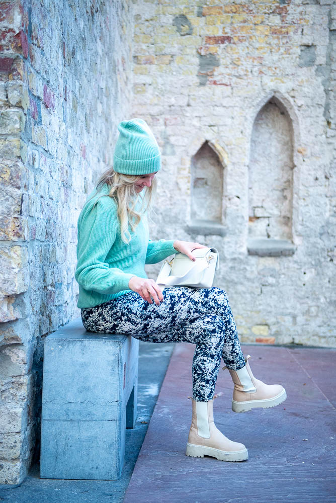 De claire pantalon heeft een mooie grafiische bloemenprint in groen en donkerblauw en bestaat uit travel kwaliteit. Deze kwaliteit zit comfortabel en is kreukvrij.