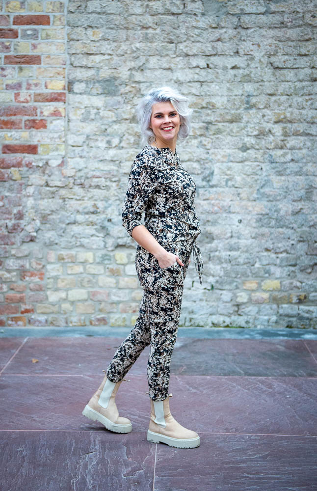 Doortje blouse heeft een grafische bloemenprint in zwart/zand en bestaat uit travel kwaliteit. .