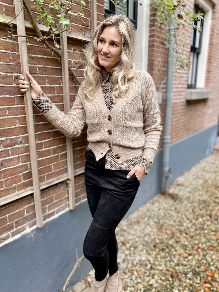De blouse heeft een leuke square print en is voorzien van een knoopsluiting.