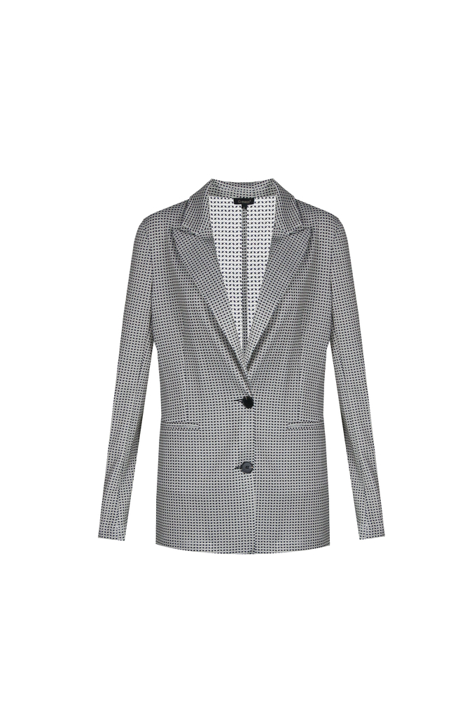 De Lea Blazer is een prachtige blazer met allover print in de kleurencombinatie zwart/roomwit/sahara
