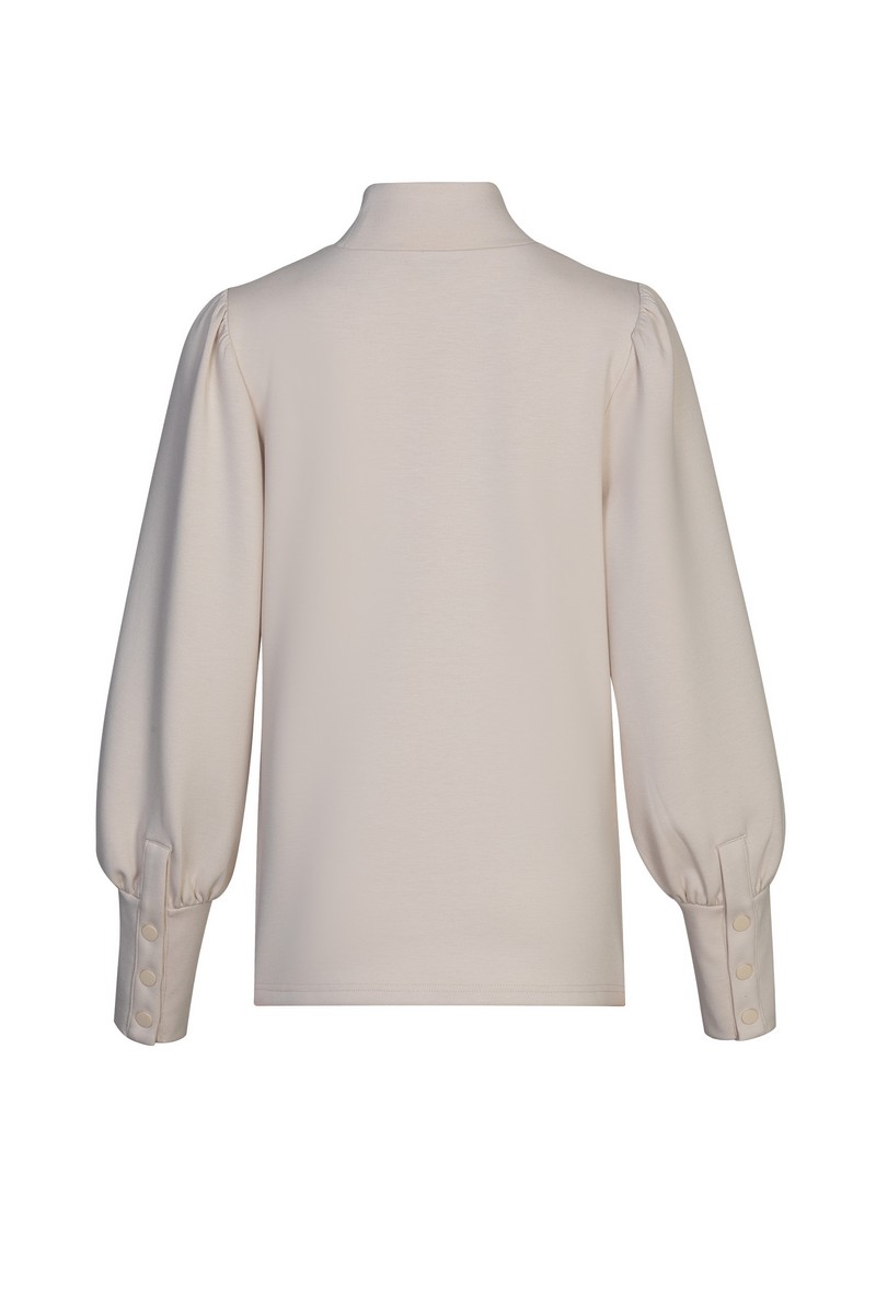 De Marijn top is heerlijk zacht en is voorzien van een opstaande col, geplooide schouders