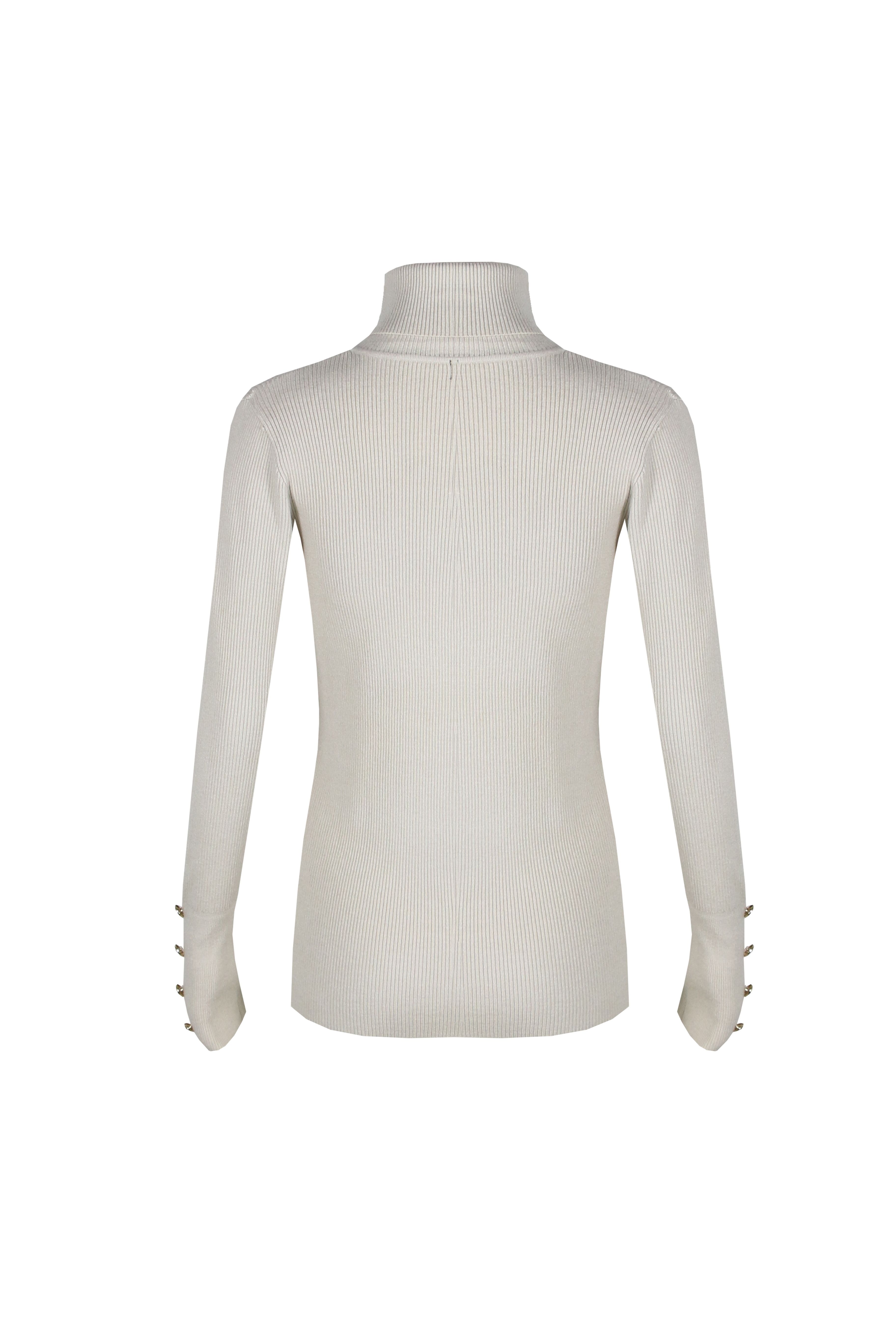 Een musthave item in de wintergarderobe is de klassieke coltrui. De Mearle trui heeft een aansluitend model met een hoge col en is voorzien van exclusieve knopen aan de uiteinden van de mouwen.