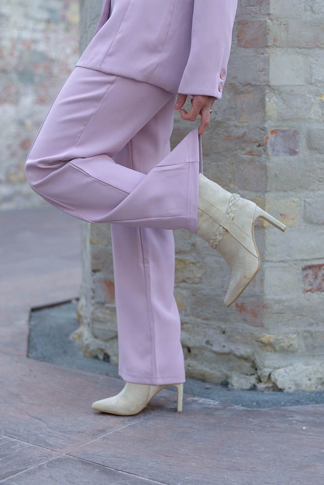 De Neda pantalon in de kleur bloesemroze is een wijdvallend model.