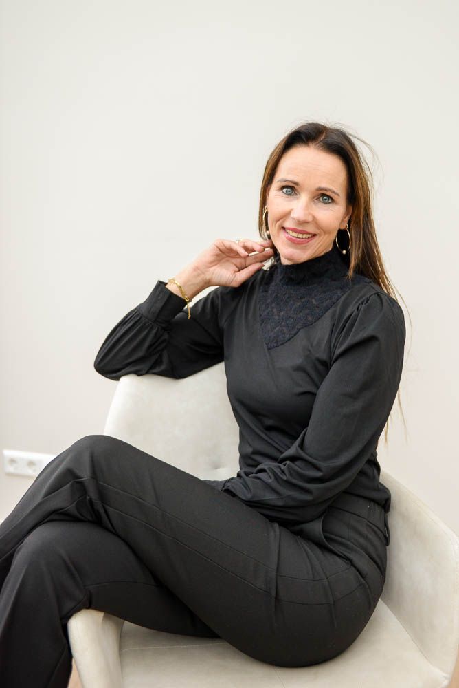 Ontdek de speelse halslijn van de Rosa top. Deze top heeft een recht model en is voorzien van een kanten halslijn met col.