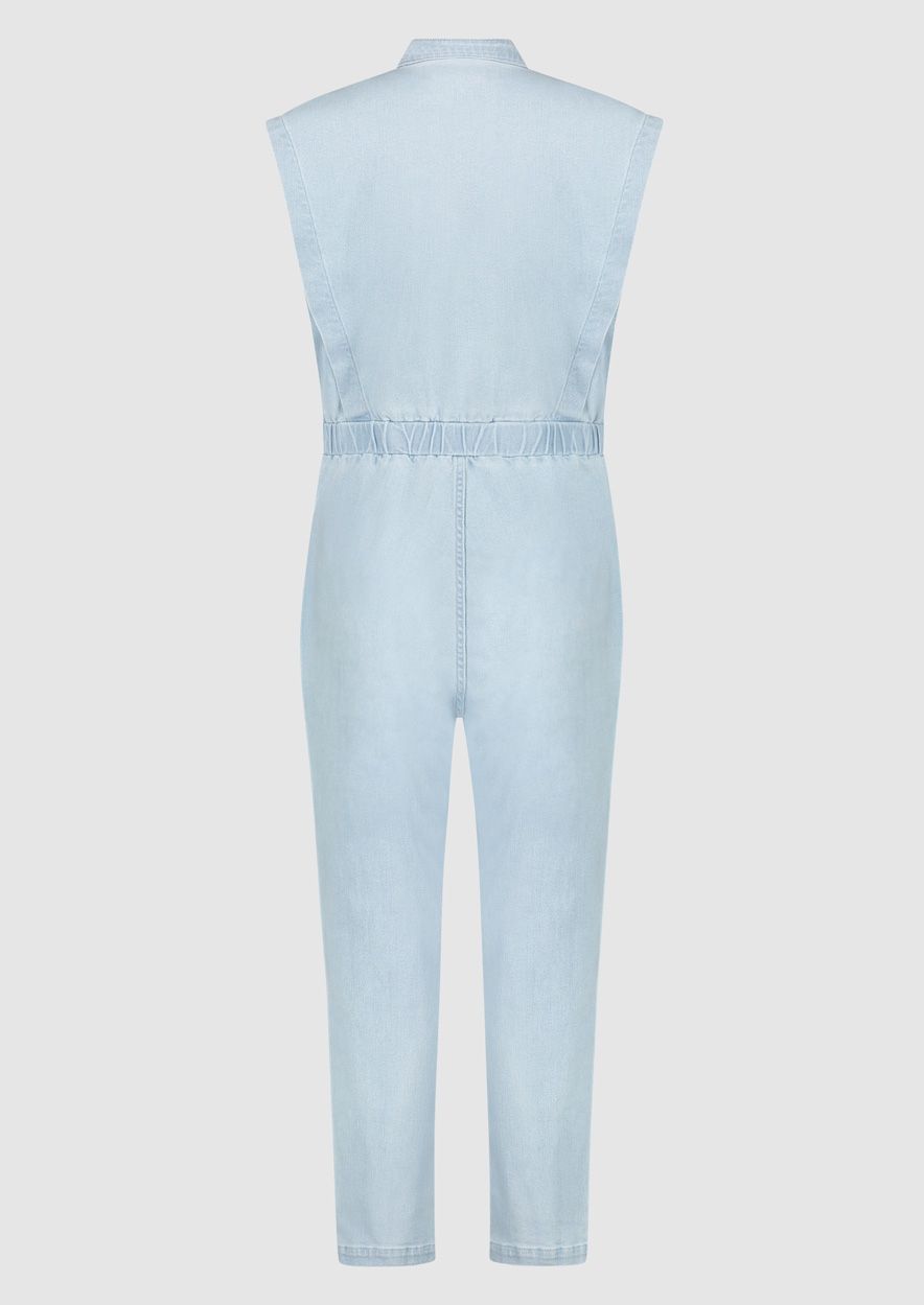 Denim jumpsuit gemaakt van stretch katoen in een lichtblauwe wash. Het Phoenix pak heeft een relaxed fit met een elastische tailleband en een asymmetrische sluiting met drukknopen.