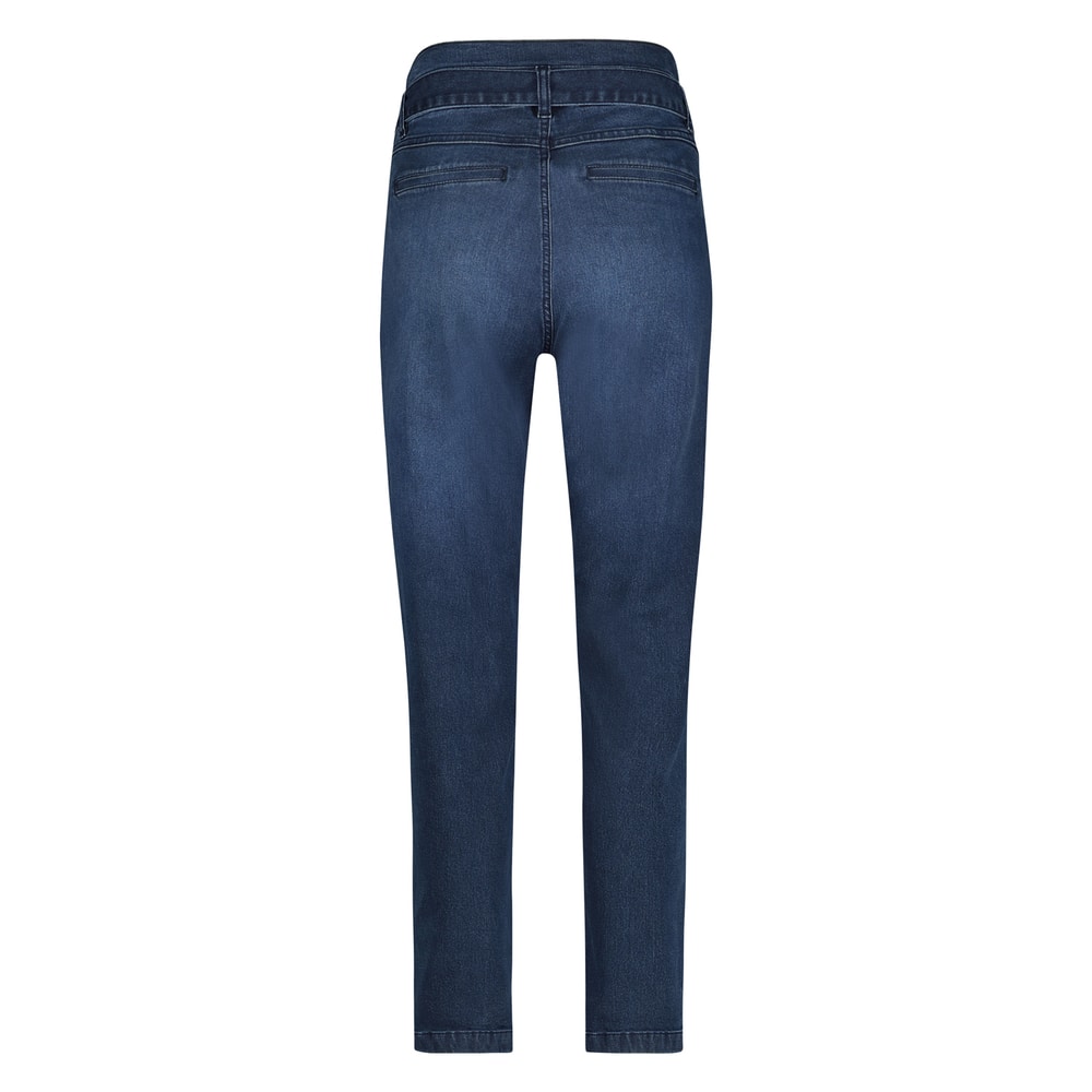 De Marlies pantalon is een paperbag model met een hoge taille, twee steekzakken aan de voorkant en twee paspelzakken aan de achterkant. De pantalon heeft een knoopsluiting en een wikkelriem in de taille.