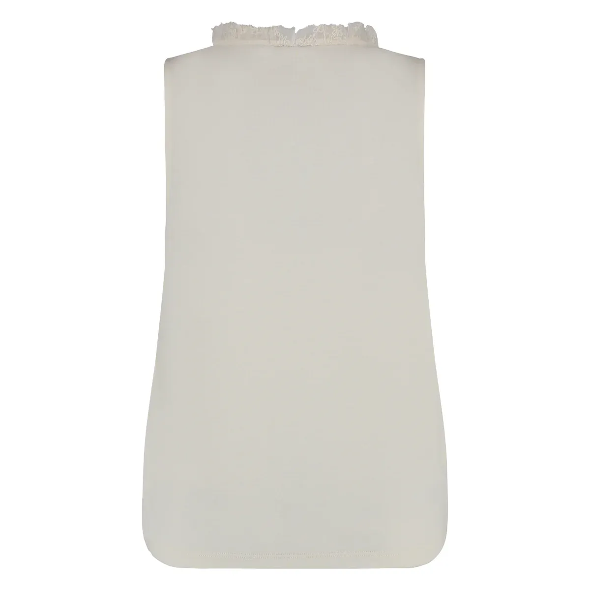 De Baltar top is een mouwloze top met een ronde hals met een geborduurde print.