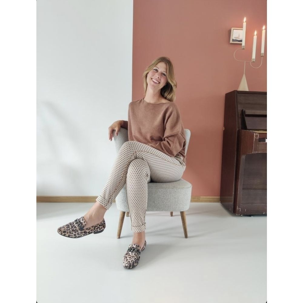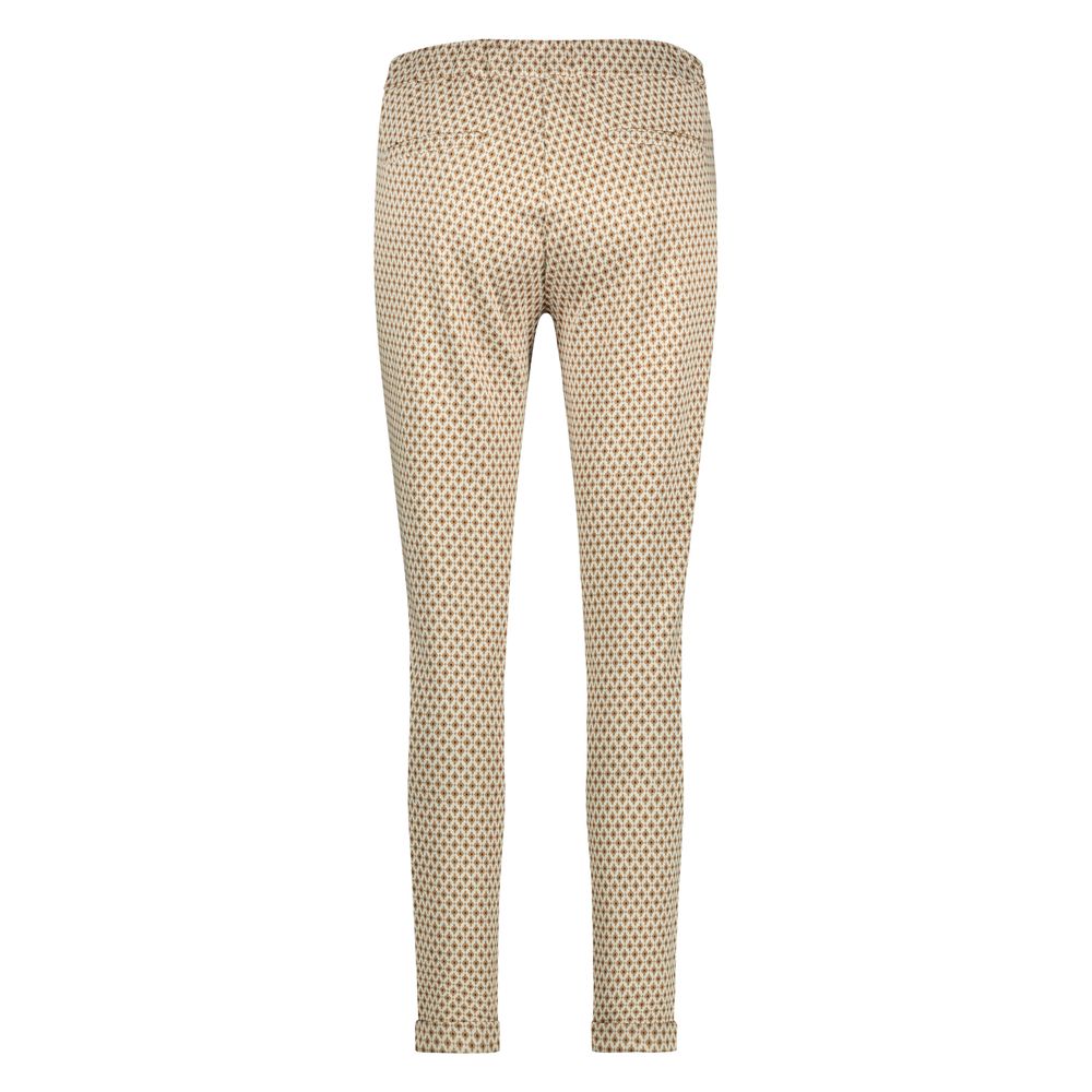 De FamJQ pantalon is gemaakt van Jacquard stof. De pantalon heeft een aangesloten pasvorm en omgeslagen smalle pijpen. De pantalon heeft een elastische tailleband en twee steekzakken.