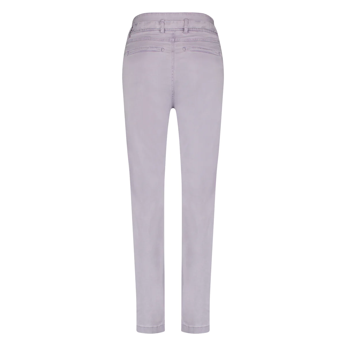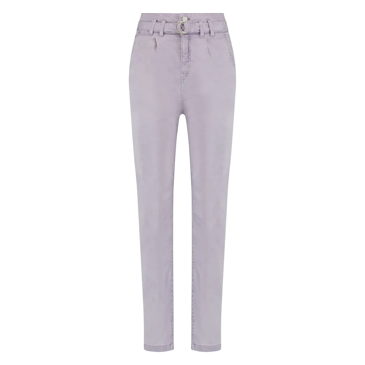 De Lisette pants is lange broek met een hoge taille, twee steekzakken aan de voorkant en twee paspelzakken aan de achterkant. De pantalon heeft een knoopsluiting en een wikkelriem in de taille.