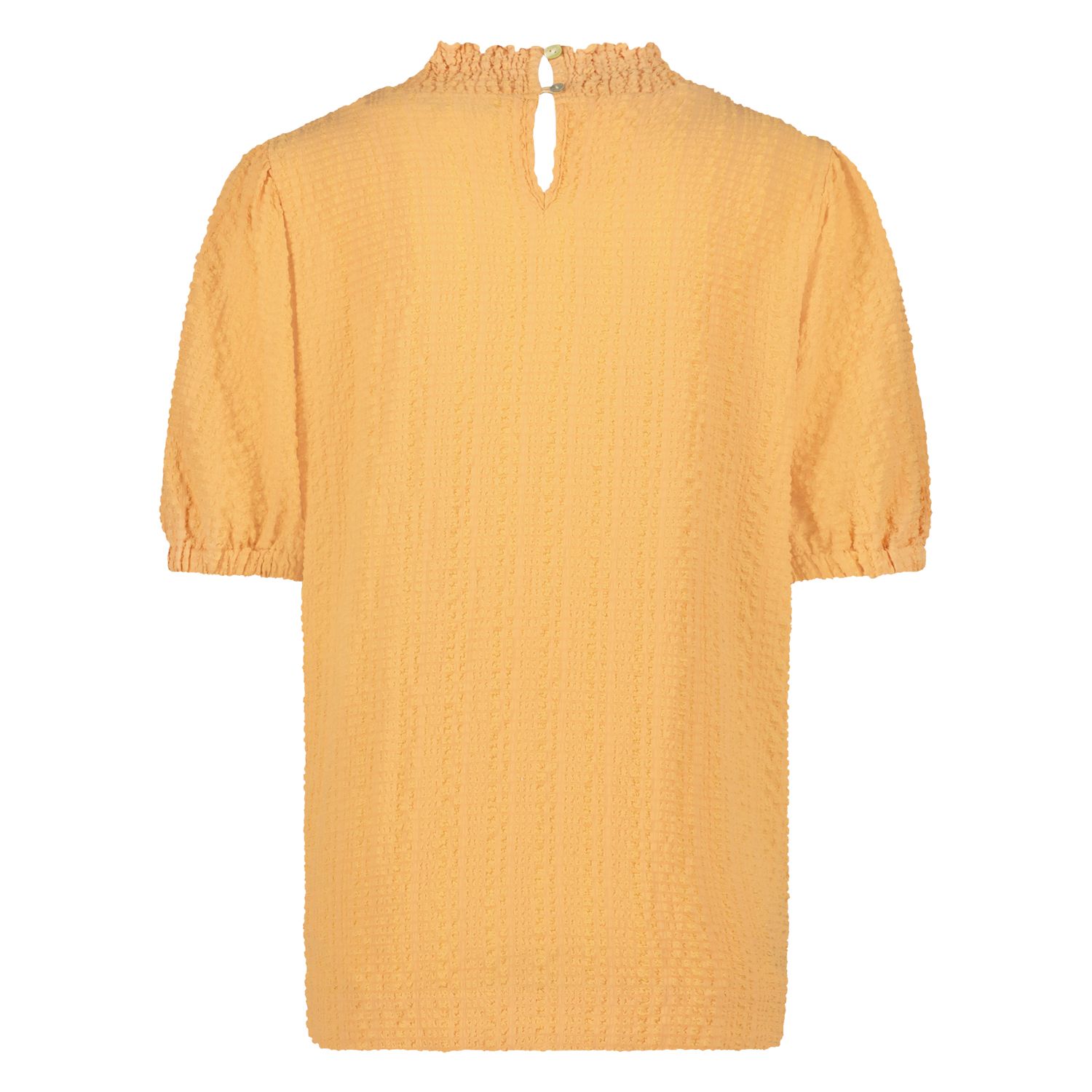 De Mick top heeft een gesmokte hals en korte mouwen met elastiek aan de uiteinden. De top heeft achterin de nek een knoopsluiting.