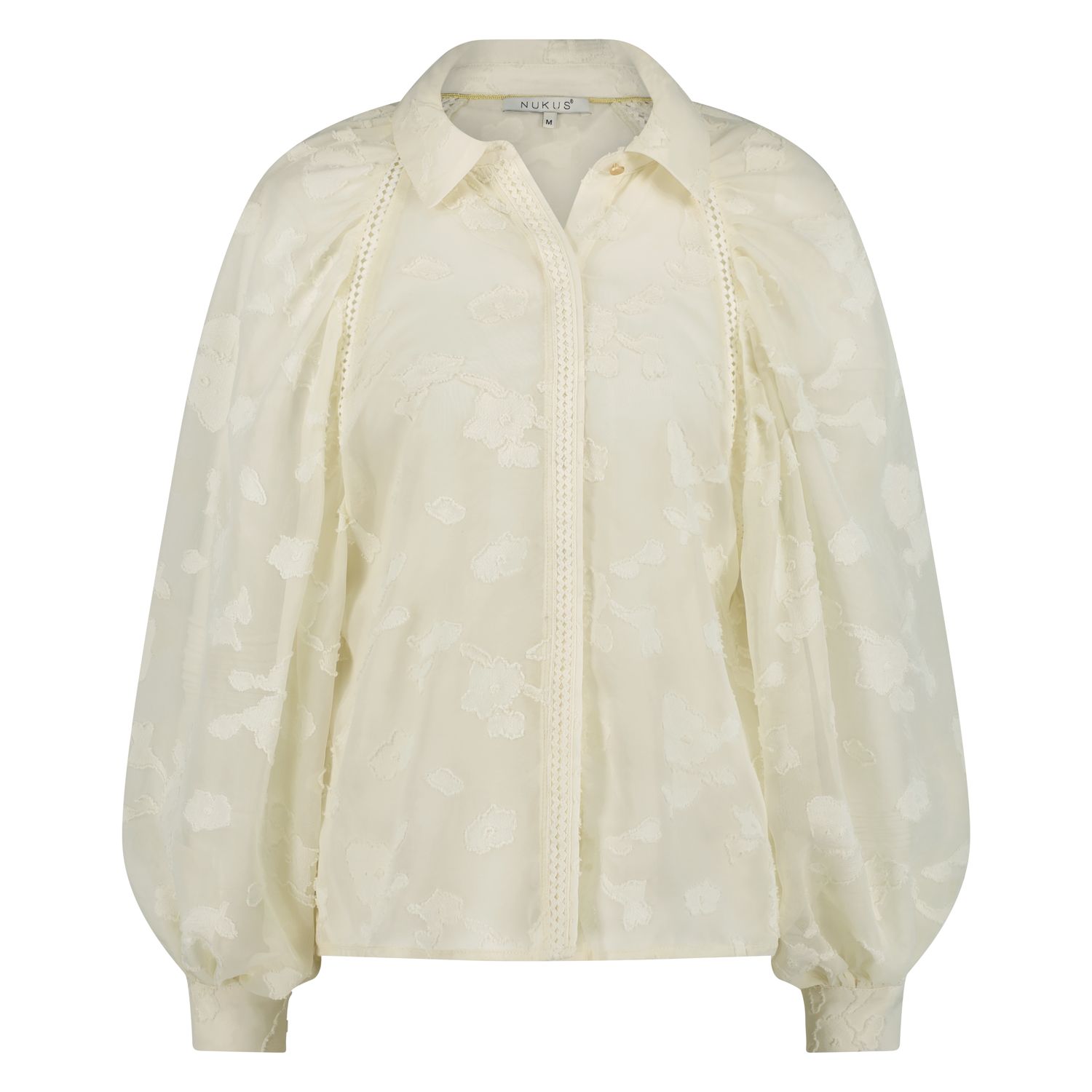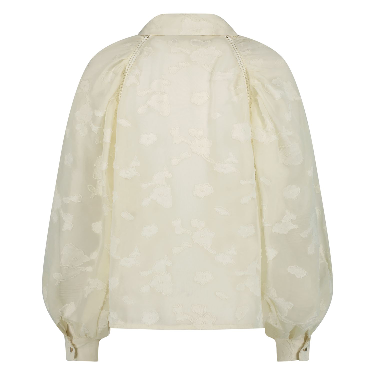 De Tatum Blouse heeft een all over print en is ontworpen met lange ballon mouwen en een V hals. De blouse kan dicht gemaakt worden met de knopen aan de voorkant. Door de details op de schouder en op de knoopsluiting wordt de blouse extra speciaal. Hij is gemaakt van een doorzichtige stof.