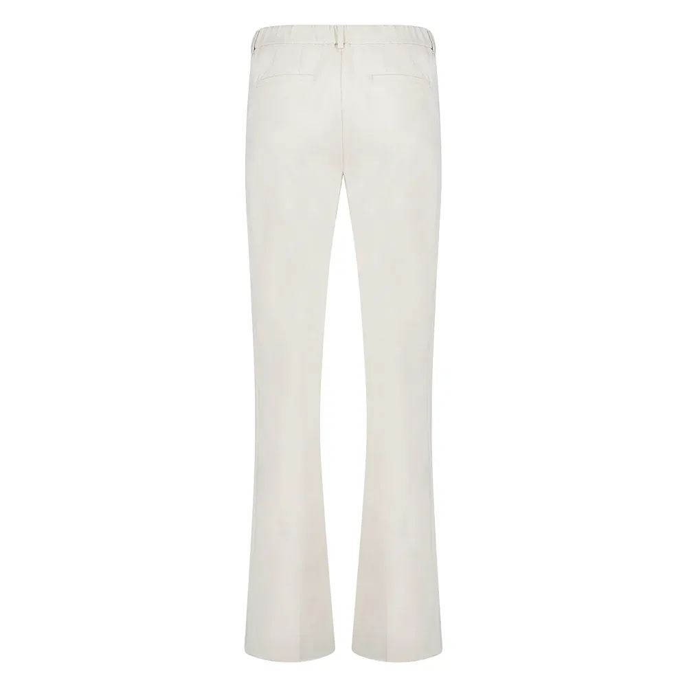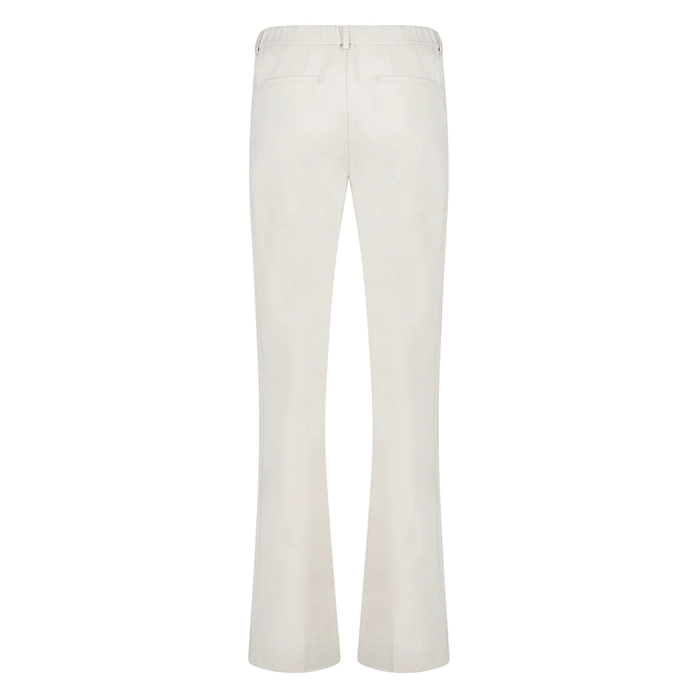 De Zoe pants is een flair pantalon met aan de achterkant twee paspelzakken. De pantalon heeft een knoopsluiting en een elastieke band waardoor je pasvorm perfect aansluit.