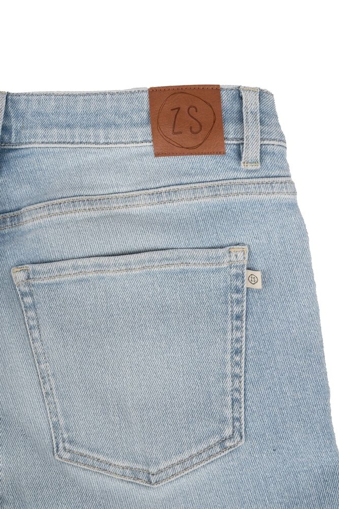 De Zusss mom jeans in de kleur lichtblauw, met een relaxte fit. Hij heeft twee steekzakken aan de voorkant, waarvan er in een van de twee nog een klein zakje is verwerkt. Op de achterkant zitten ook twee zakken. De jeans heeft lusjes om een riem doorheen te rijgen. Helemaal van nu zo'n fijne jeans met een hoge taille, wat ruimer om benen en waarvan de broekspijpen weer iets toelopen.
