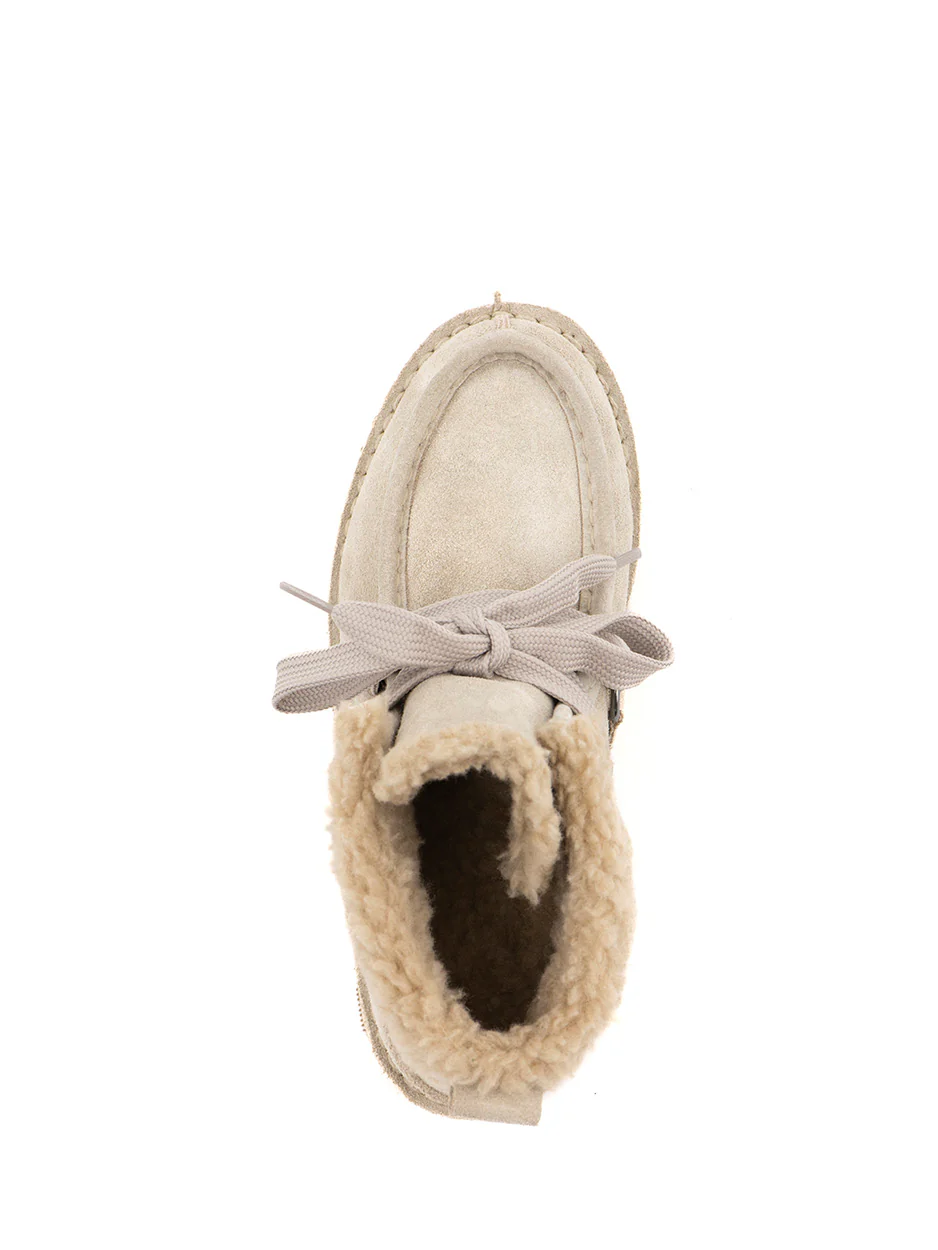 Blijf warm en droog in weer en wind met deze enkelboots. Ontdek de ultieme combinatie van warmte, comfort en stijl met deze vachtlaarsjes! Het suède bovenwerk met opstaande naden zorgt voor een trendy en luxe uitstraling. Geniet van de heerlijke warmte die deze laars biedt dankzij de voering van zacht faux fur. Het voetbed is uitneembaar. De rubberen zool, afgewerkt met een katoenen rand, biedt uitstekende grip. Kleur: Beige Pasvorm: Valt normaal Materiaal buitenkant: Suede Materiaal binnenkant: Synthetische wol Materiaal voetbed: Synthetische wol Materiaal zool: E.V.A. Uitneembaar voetbed: Ja Ritssluiting: Nee Hakhoogte: 5cm