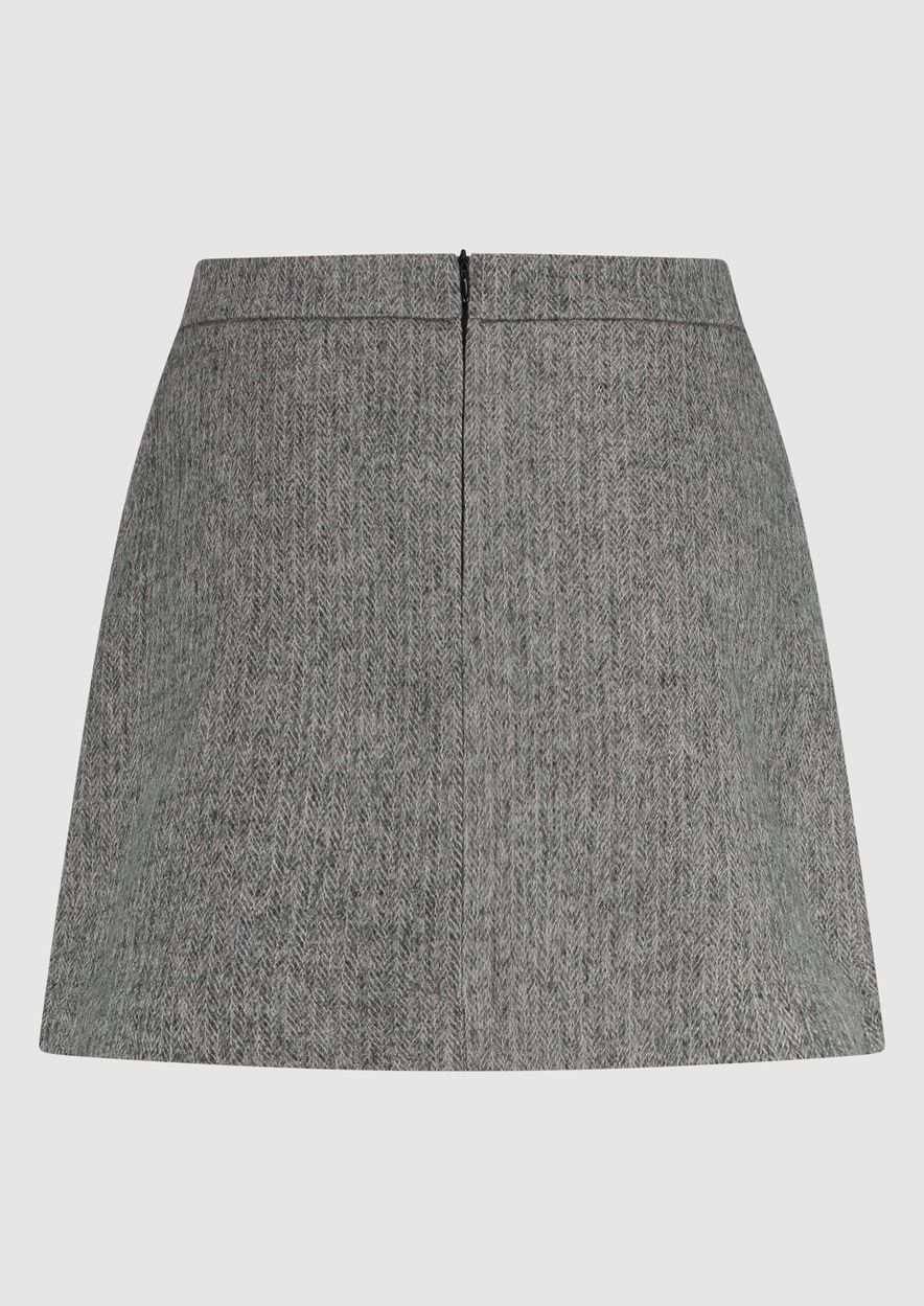 Dames korte A-lijn rok met een visgraatpatroon in grijs melange. De Rebecca skirt heeft steekzakken en een verborgen rits. Beschikbaar in meerdere tinten.