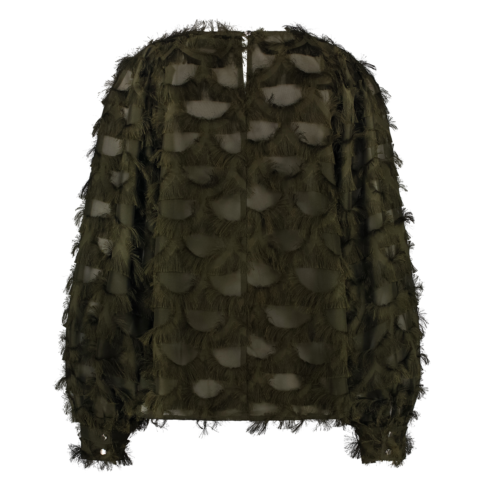 Sprankeling en elegantie? Dat is de Jade top! Met zijn ronde hals en strakke pasvorm bij de polsen straalt deze top tijdloze klasse uit. De losse mouwen voegen een ontspannen en comfortabel element toe aan het geheel. De frills die over de hele top zijn verspreid, geven een speelse en vrouwelijke touch, waardoor deze top zowel chic als eigentijds is.