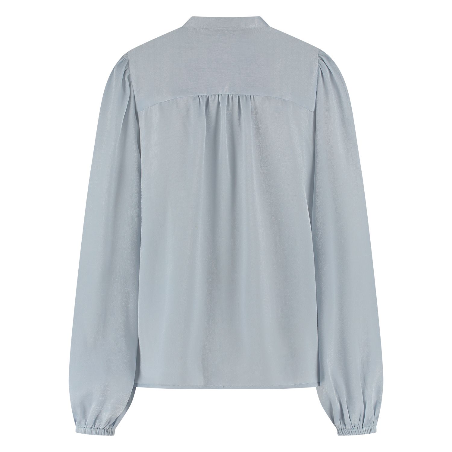 De Namibia blouse heeft zilveren knopen en een V-hals. Verder heeft het lichte pofmouwen en elastiek bij de polsen voor meer comfort. Leuk te combineren met een donkere jeans voor een speelse look!
