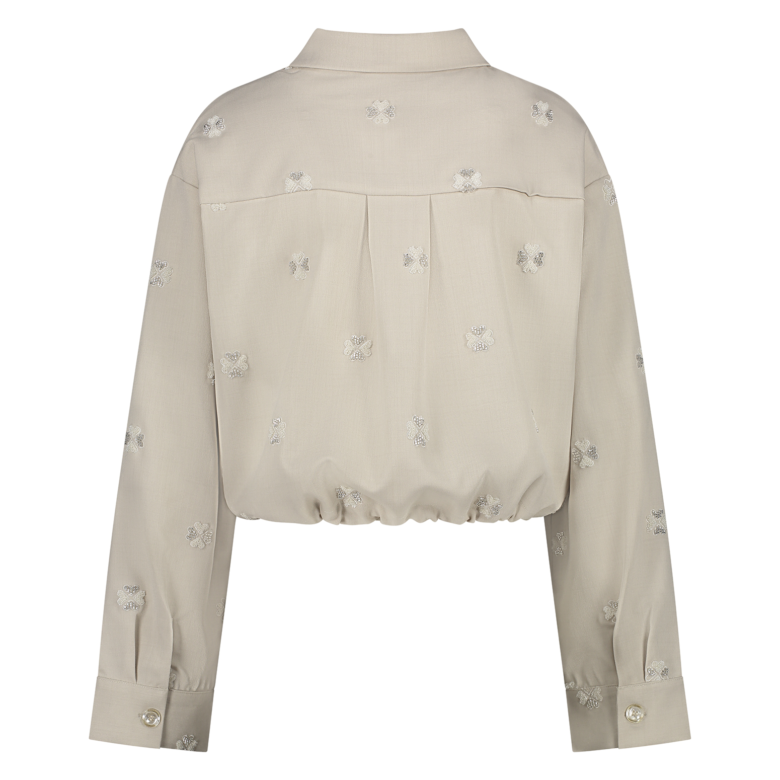 De Newport blouse is een elegant kledingstuk met zijn open kraag en chique knopen. De blouse heeft klaver 4 details over de blouse, versierd met glitterkraaltjes. Bovendien is de onderkant van de blouse voorzien van elastiek, waardoor je de pasvorm naar wens kunt aanpassen.
