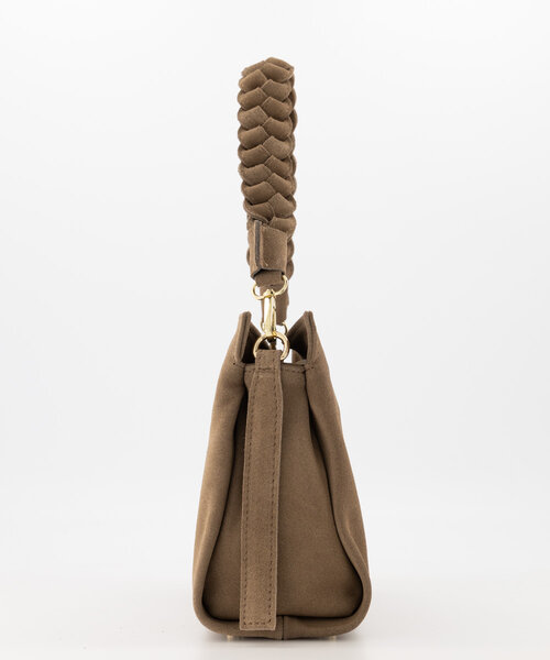 Sarah is een suede leren handtas die ook gedragen kan worden als crossbody tas. Bij de tas zit een afneembaar en verstelbaar hengsel. De tas heeft een binnenvak met aan de binnenzijde een steekvak.