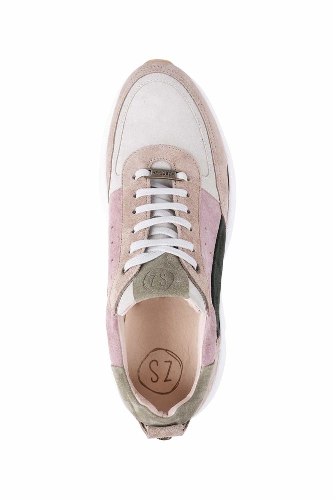 Deze opvallend gekleurde sneakers zijn helemaal hip! De dikke zool van de schoen is modern en loopt heel comfortabel. Deze schoen heeft taupe, lichtgroen en lila accenten.