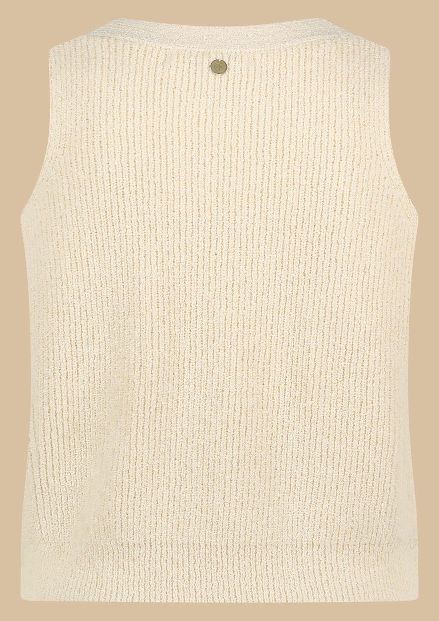Gebreid flat knit gilet uitgevoerd in een lichte ecru tint. De Jayce top heeft een regular fit met een knoopsluiting.