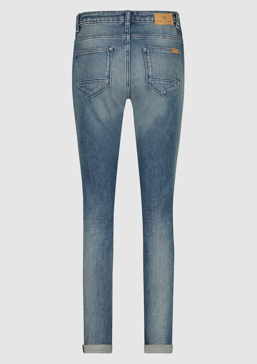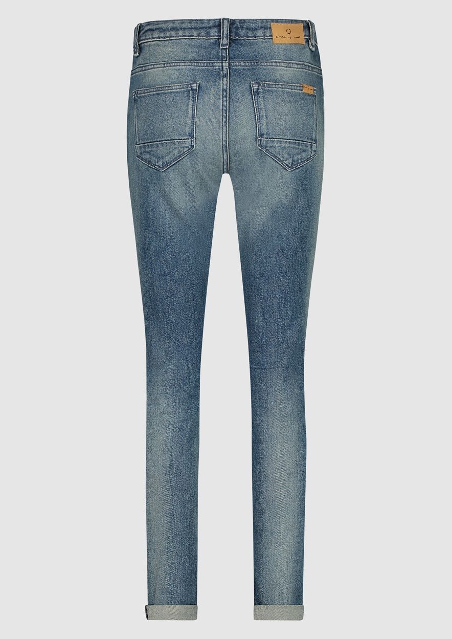 De Cooper is gemaakt van stretch katoen in een vintage blauwe wash met beschadigde details.