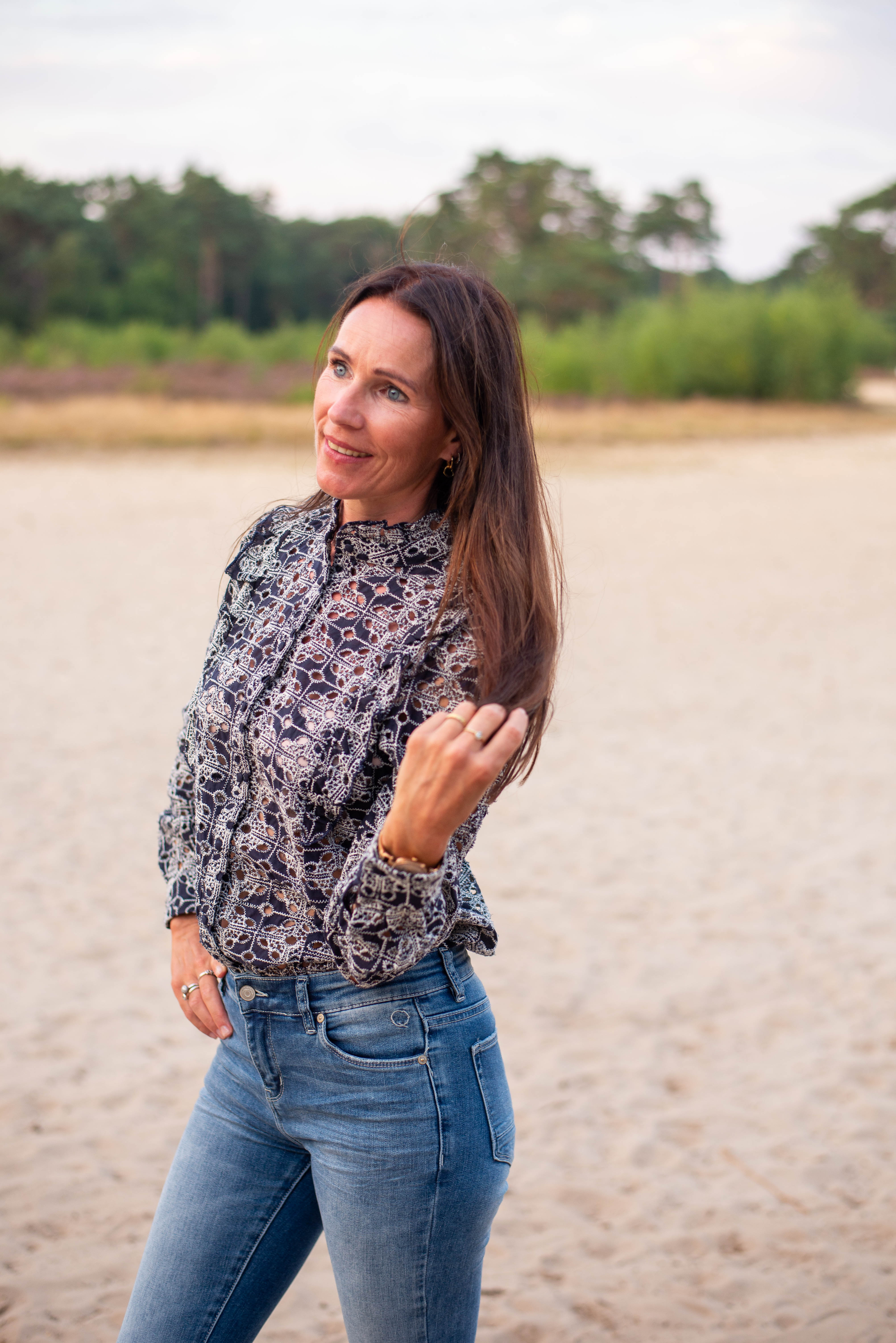 De Celeste blouse heeft een regular fit met een knoopsluiting en ruche details.