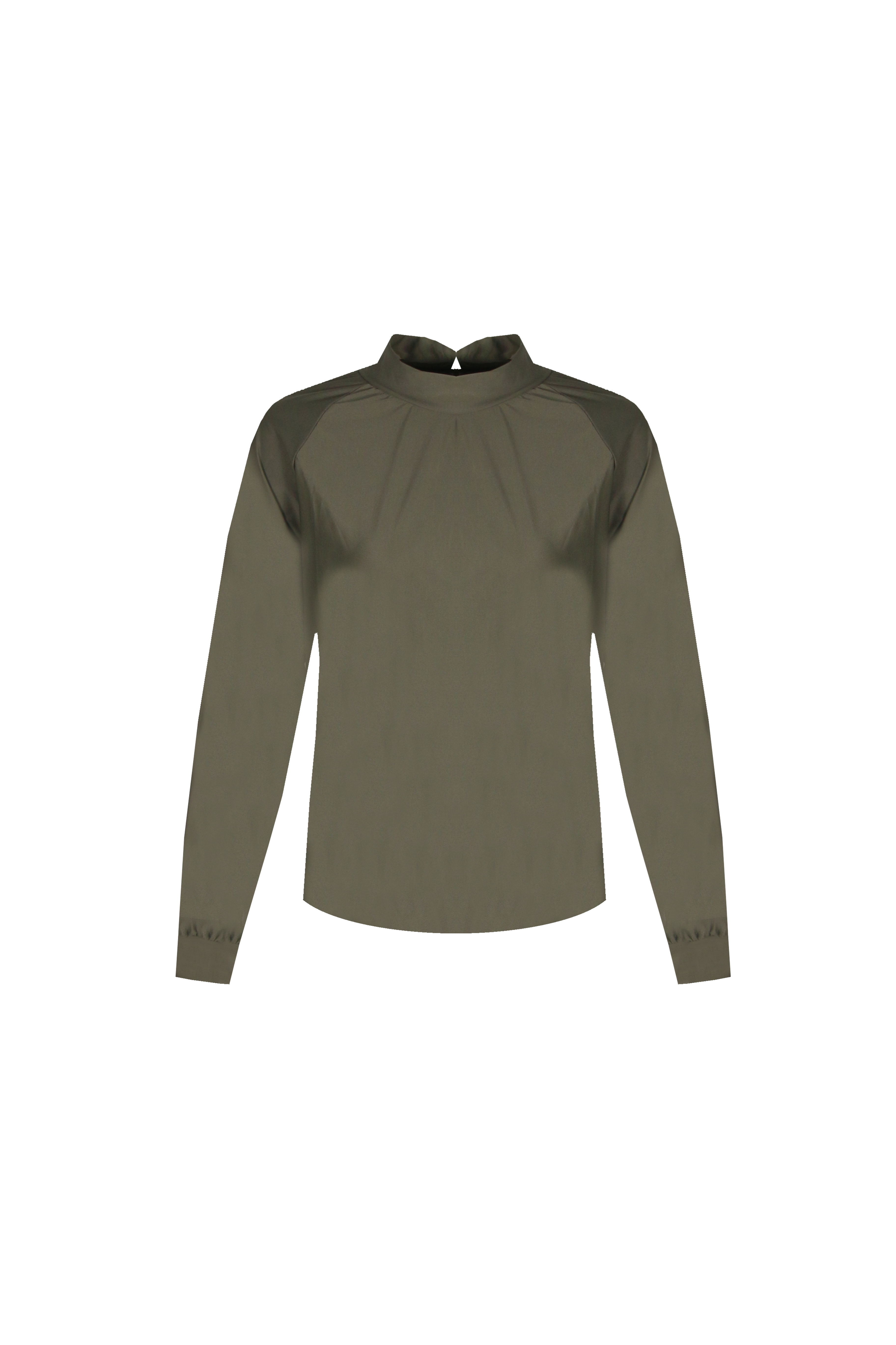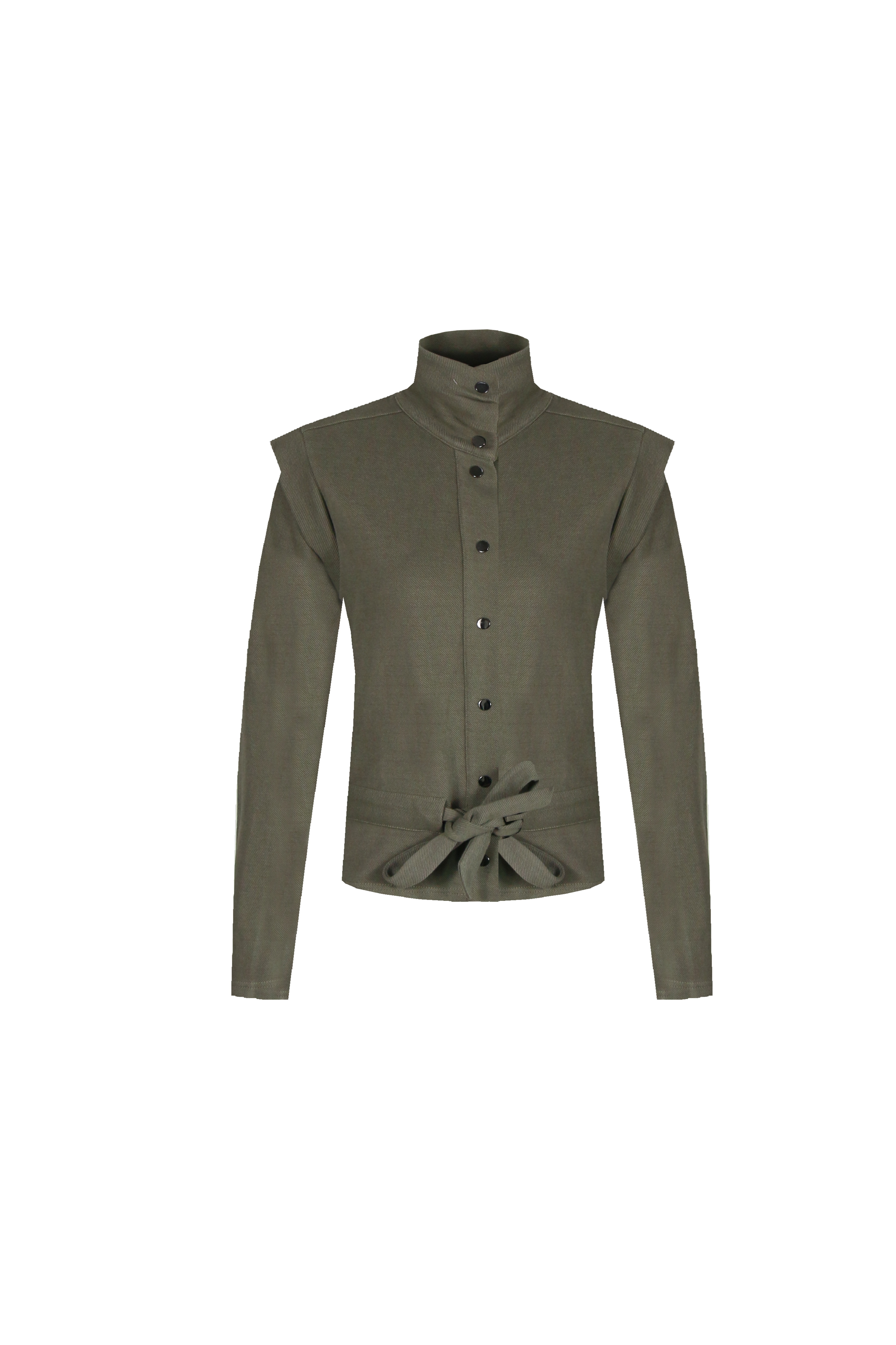 De Ghita jas heeft een halfopstaande kraag en lange mouwen. De jas heeft een leuk detail op de schouders is voorzien van knoopsluiting en geïntegreerde touwtjes om de taille.