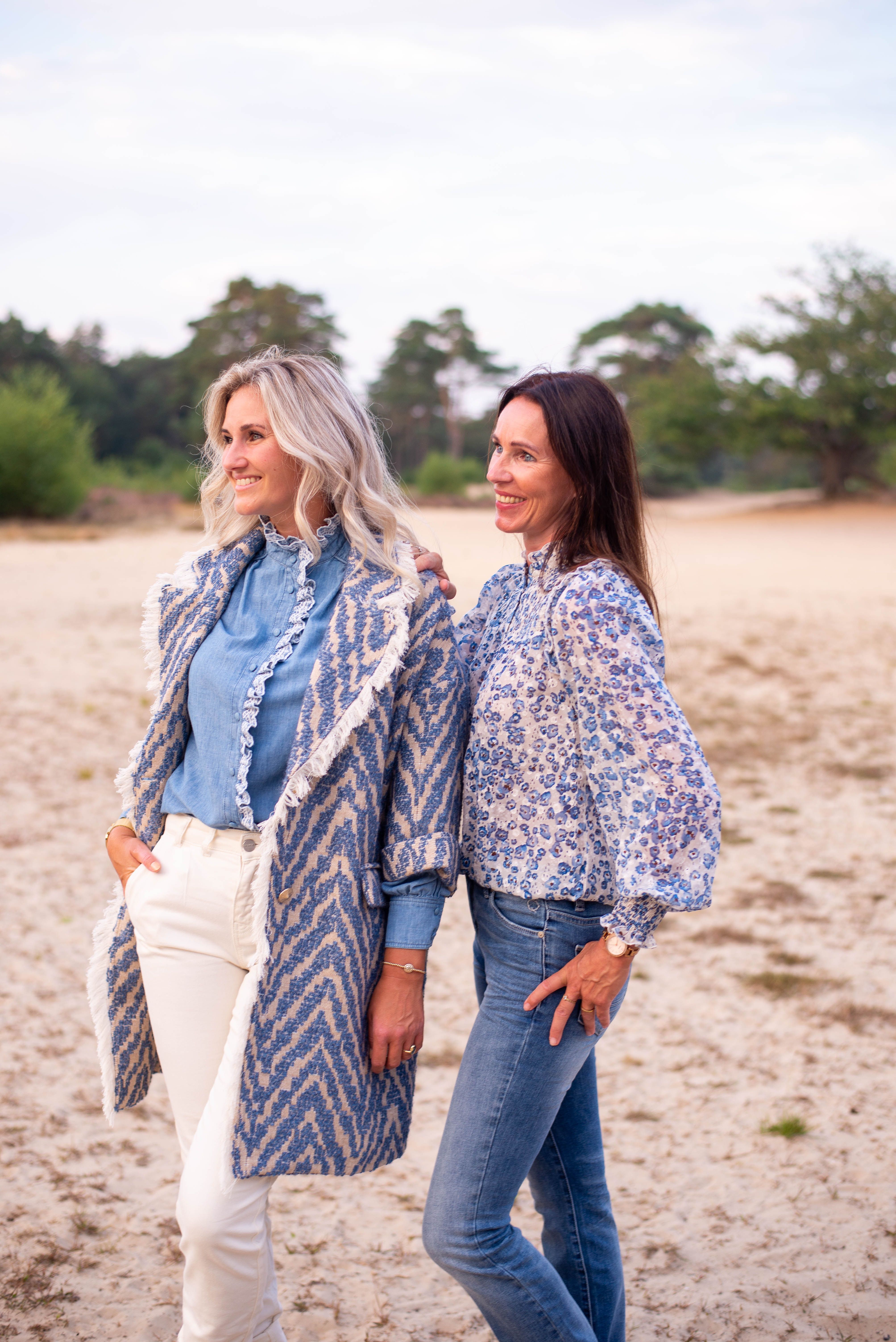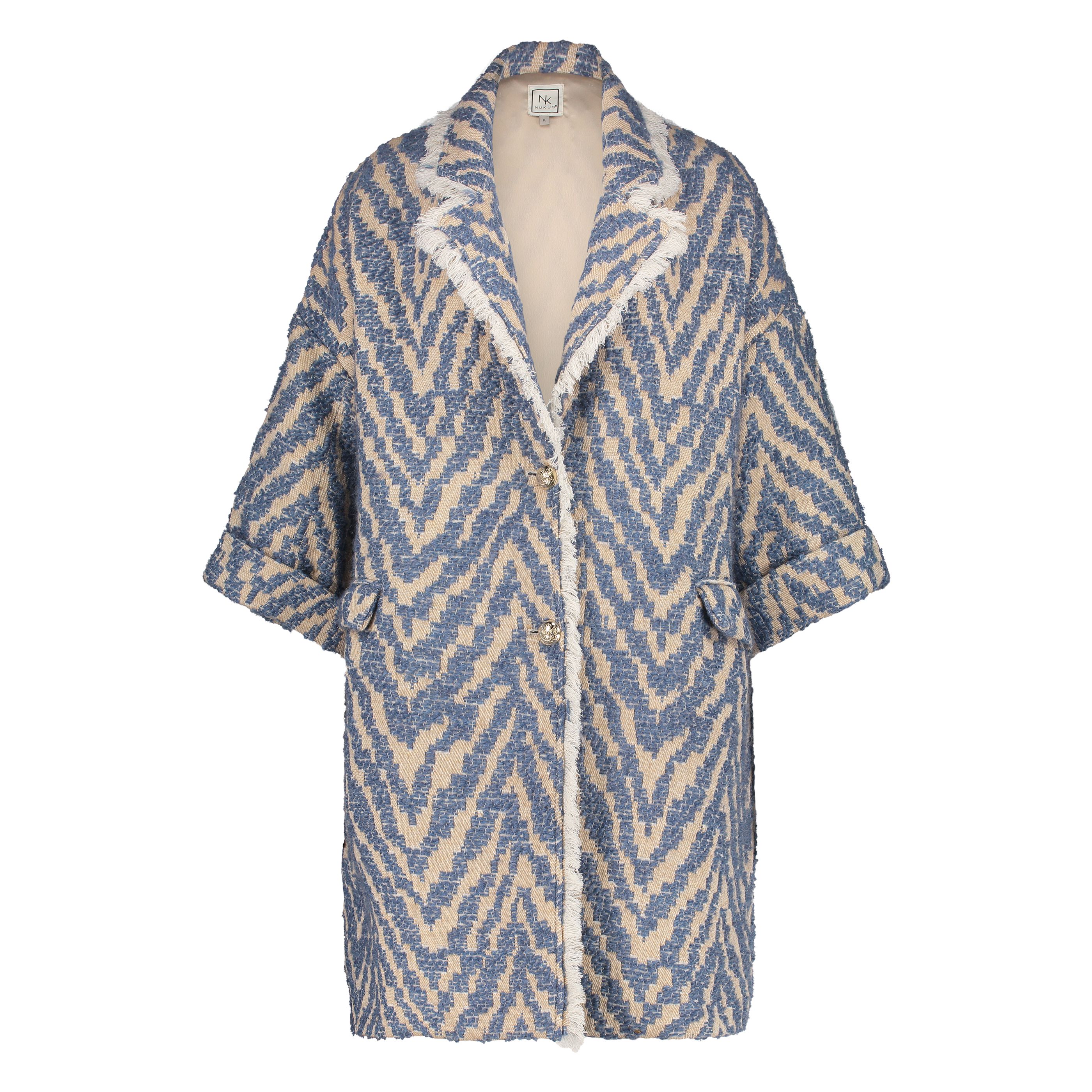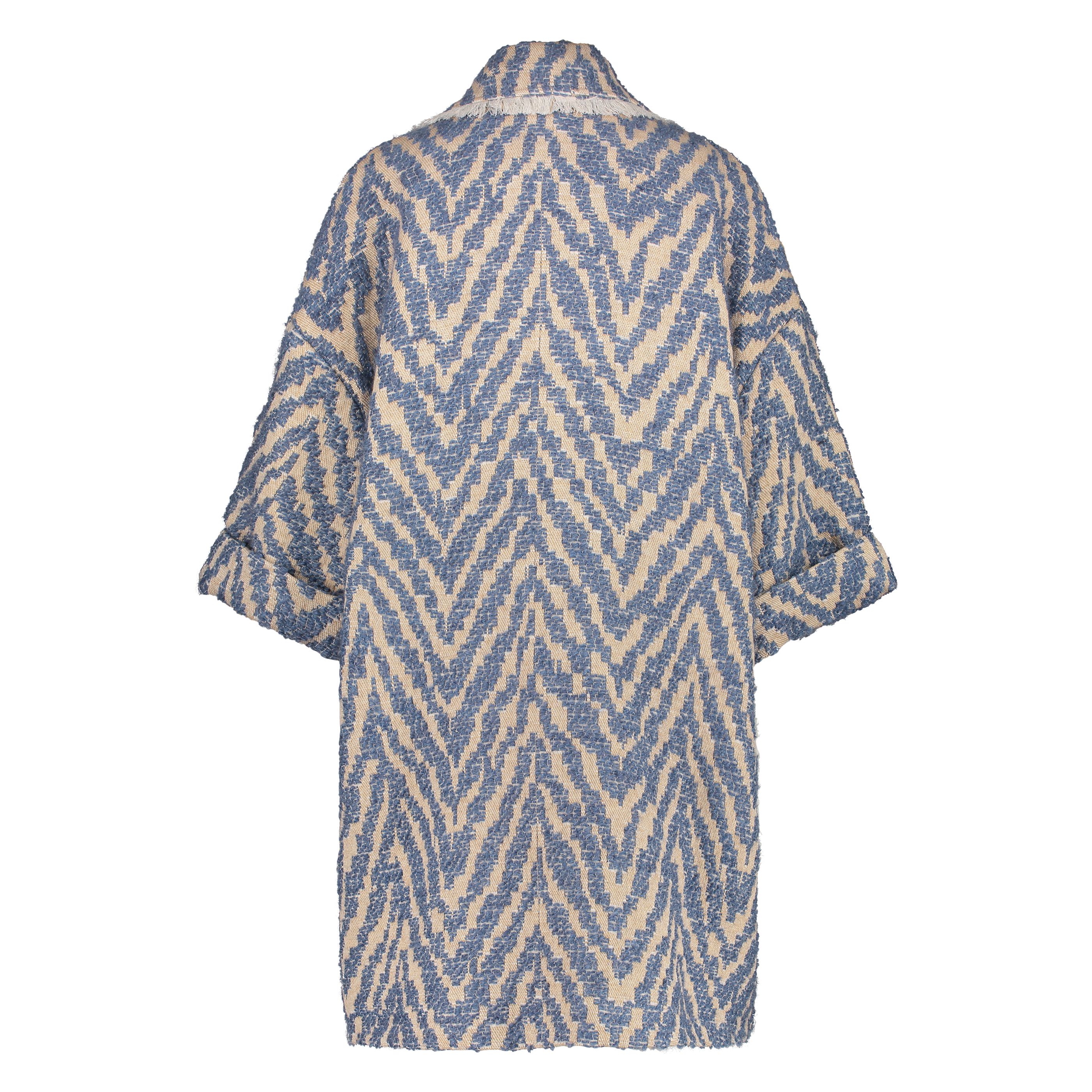 De Isabelle Coat heeft een kraag met een overall print, een knoopsluiting en 2 grote zakken.