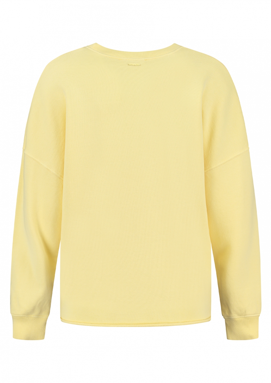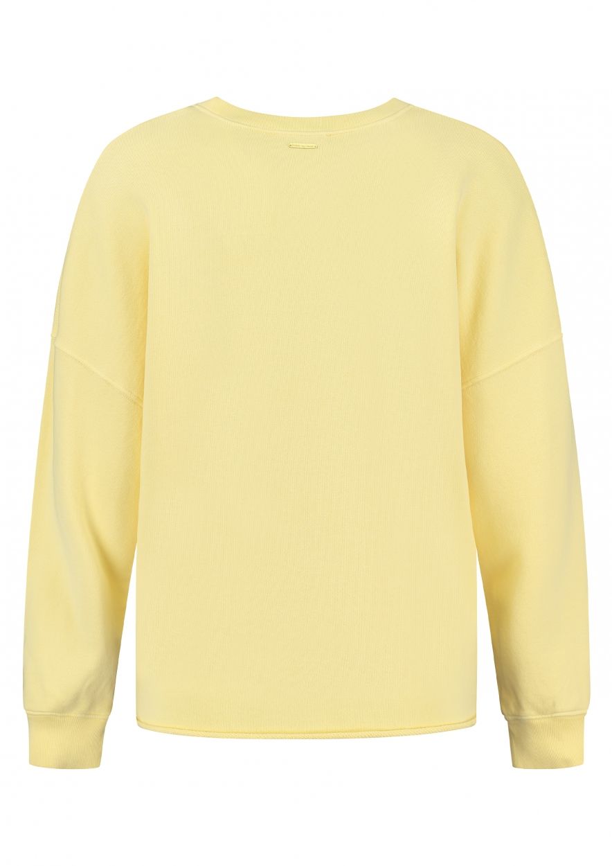 Oversized sweater gemaakt van katoen met een zachte, ruwe binnenkant in een lichtgele kleur. De Fenna sweat heeft een ronde hals en ribgebreide boorden.Materiaal:100% katoen