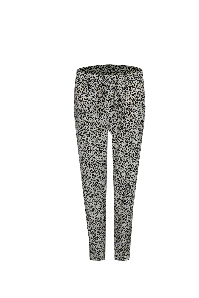 De speelse panterpint die je deze zomer terugvindt op diverse travelstof items laat zien dat deze print met geeltinten ook heel elegant kan zijn op comfortabele pasvormen en stoffen. De Bernadette broek loopt taps toe en heeft een strikceintuur rond de taille band.