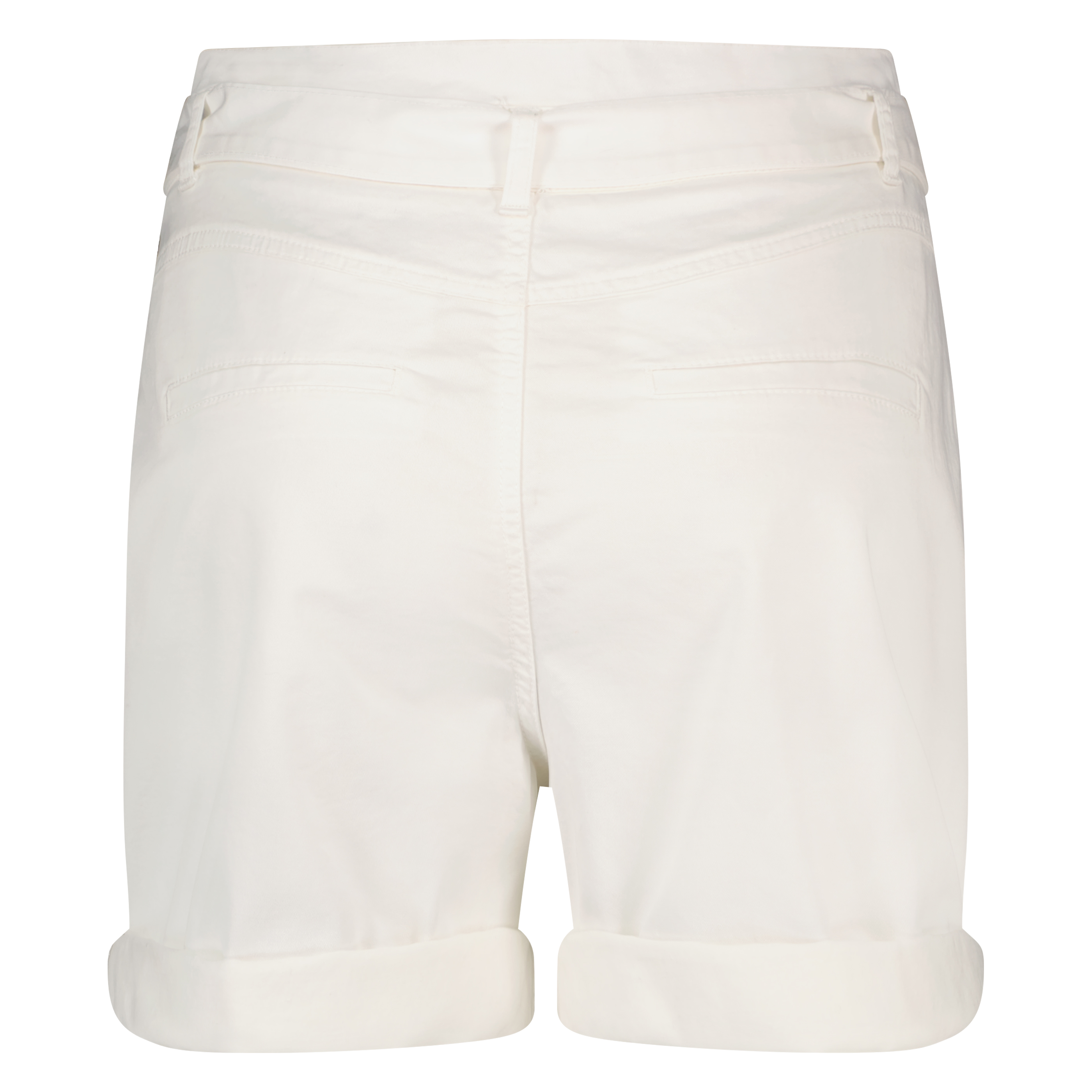 De Eami shorts is een korte broek met een hoge taille, twee steekzakken aan de voorkant en twee paspelzakken aan de achterkant. De pantalon heeft een knoopsluiting en een wikkelriem in de taille.