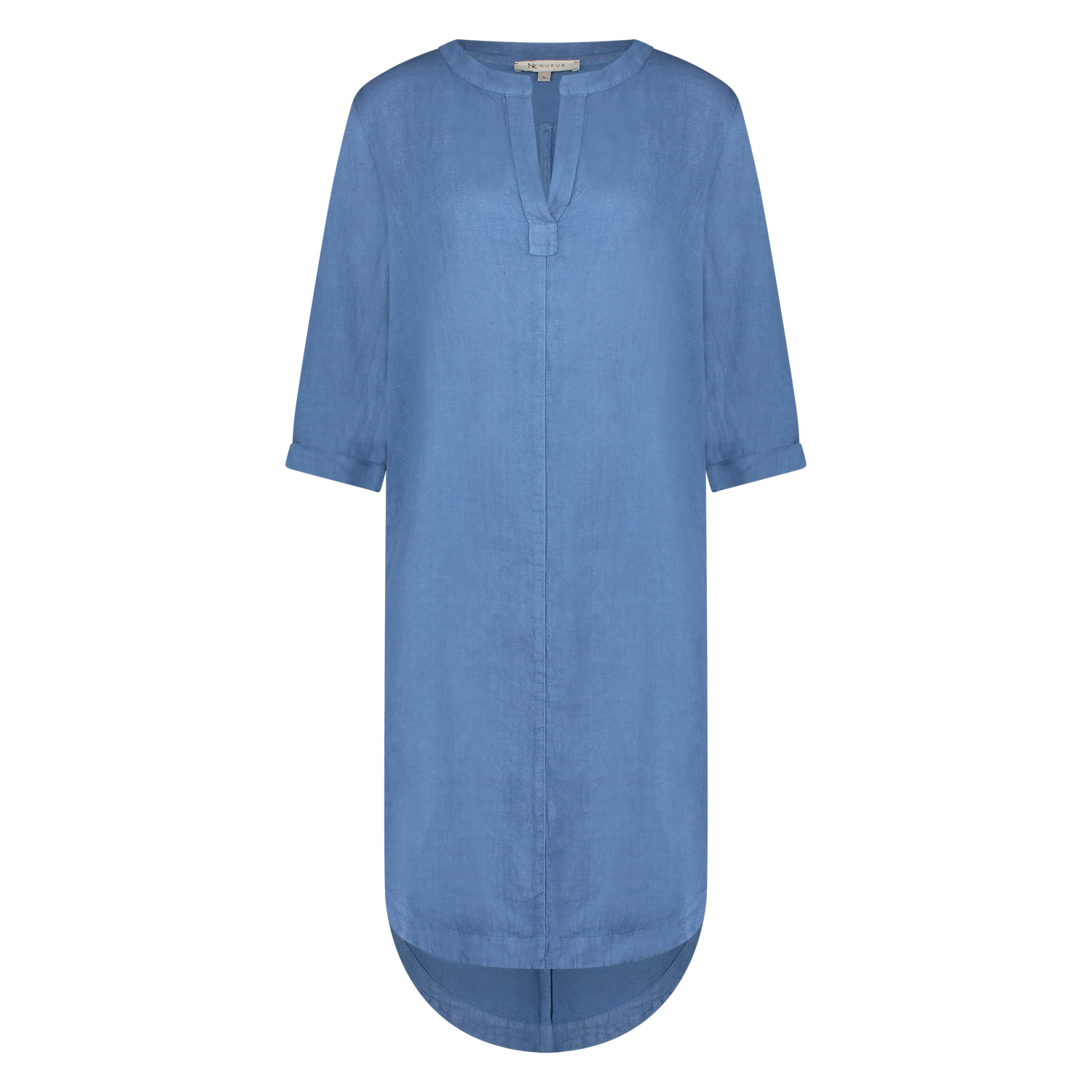 De Kate jurk heeft een los vallende pasvorm die aan de voorkant gemaakt is van 100% linnen en aan de achterkant uit een katoenen jersey kwaliteit wat zorgt voor een fijn draagcomfort. Verder heeft de jurk driekwart mouwen en een V-hals.
