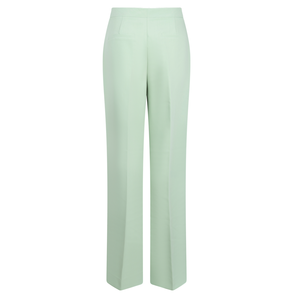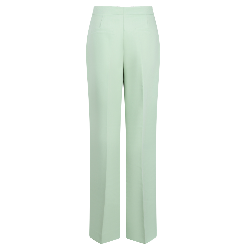 De Moore-broek is een van de altijd geliefde items. Deze broek met wijde pijpen over de volledige lengte heeft een taillebandsluiting met ritssluiting en haak en staaf. Het model heeft een normale pasvorm en heeft geperste ijzeren plooien langs de voorpijp voor een getailleerde look. De stof is een zware viscosemix. Aan de achterkant zitten twee nep paspelzakken.
