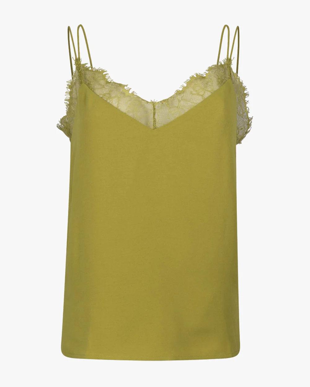 De Pearl-top is de perfecte top van dof satijn voor elke gelegenheid. Het heeft dubbele bandjes en een elegant vleugje kant.Materiaal:100% Polyester