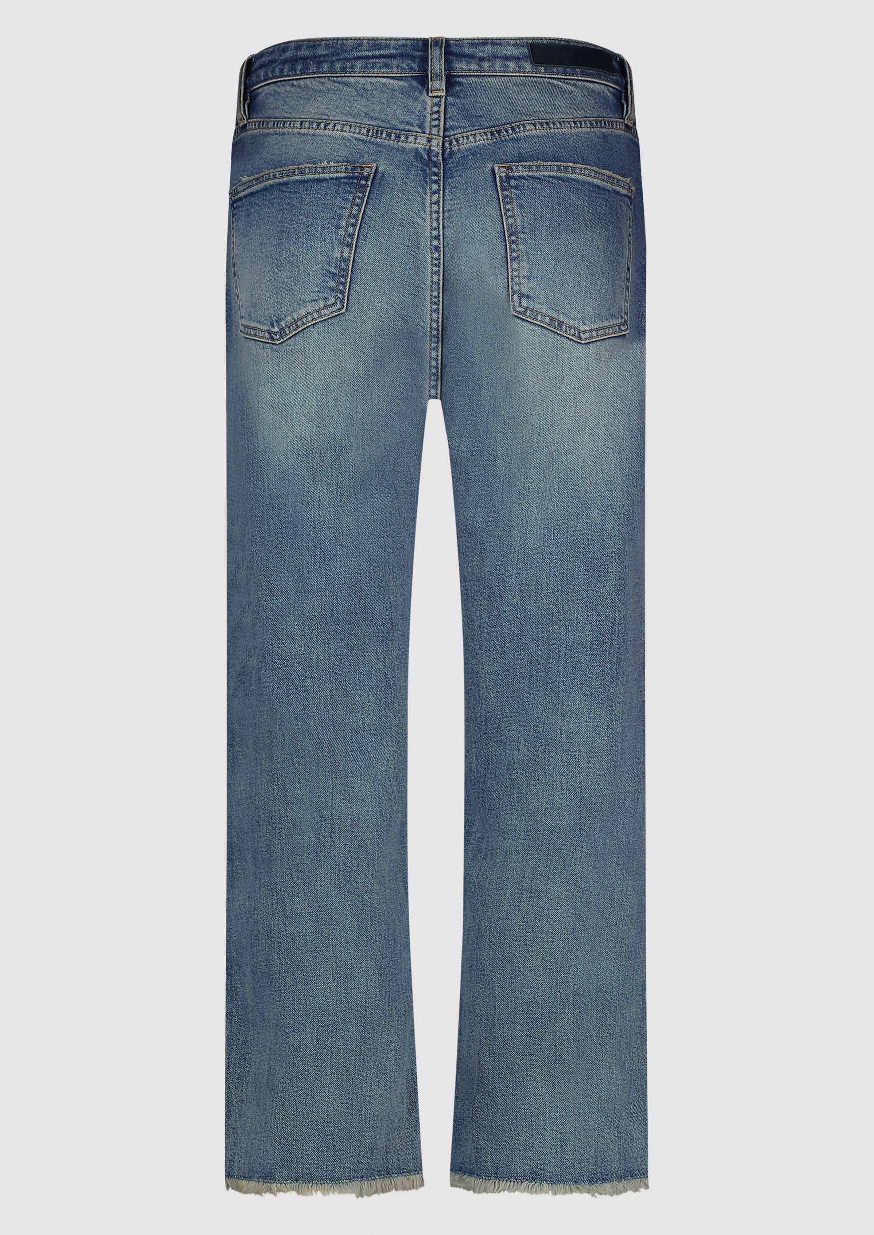 De Jaimy is onze loose straight fit denim voor dames. Deze jeans heeft een 5-pocket design met afgeknipte broekspijpen met een cropped lengte. De broek is uitgevoerd in een lichtblauwe tint met beschadigde details.