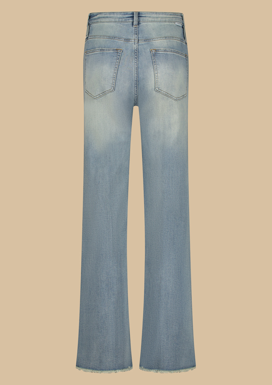 De Marlow is onze high waist denim met wijde, licht uitlopende broekspijpen en een gerafelde onderkant. Deze jeans is uitgevoerd in lichtblauw met een vintage lichte fade en is gemaakt van stretch katoen. Beschikbaar in meerdere wassingen.