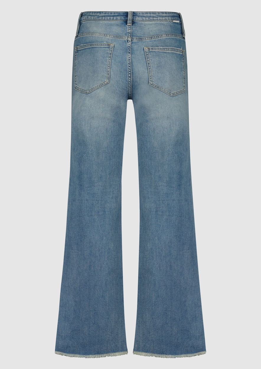 De Marlow is onze high waist denim met wijde broekspijpen gemaakt van stretch denim. Deze jeans is uitgevoerd in een vintage blauwe wassing en heeft een 5-pocket design.