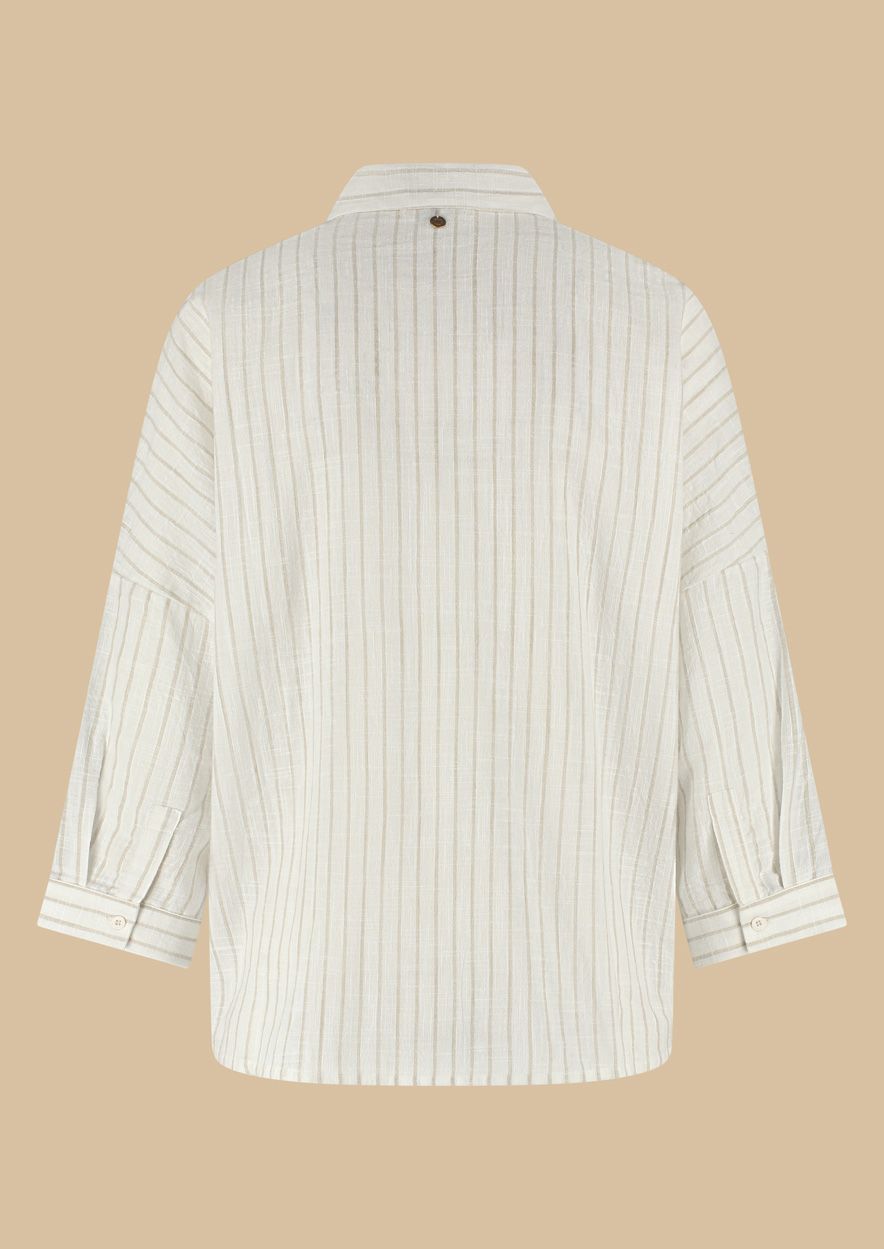 Licht doorschijnende blouse met drop shoulder blouse in het wit met beige gestreept. De Rory blouse heeft een oversized fit, 7/8 mouwlengte en knoopsluiting aan de voorzijde. In meerdere kleuren beschikbaar.